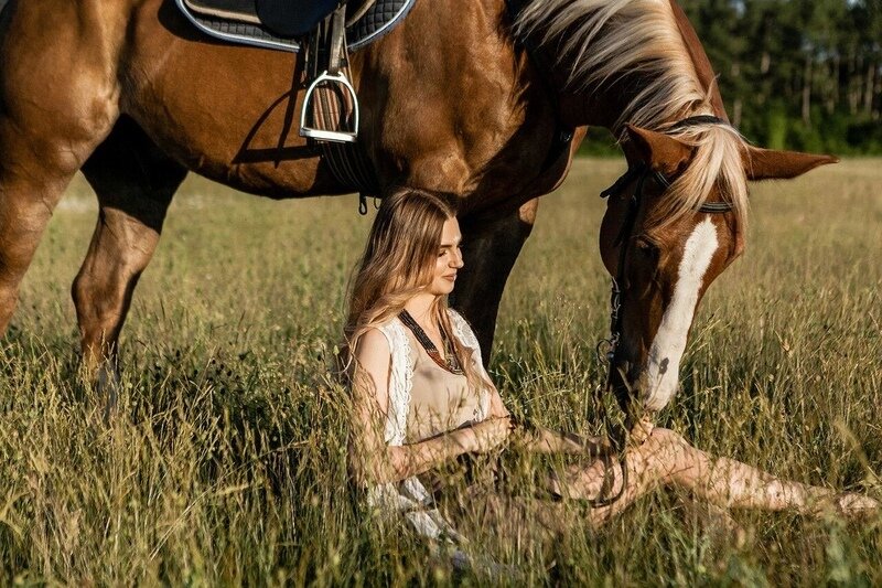 7. Фотосессия с лошадьми: 1700 ₽ / 40 минут, 2000 ₽/час (стоимость аренды лошади и работа сопровождающего).
