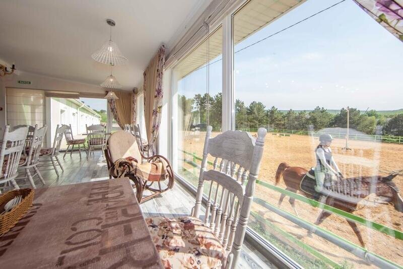 Уютные мини-отели вмещают до 30 гостей, а ресторан предлагает вкусную еду из местной фермы. Здесь вы найдете все для комфортного отдыха: беседки с мангалом, русскую баню и деревянные чаны, вольеры с разнообразными животными. На просторной территории находится конюшня с породистыми лошадьми и пони, а также плац для занятий верховой ездой.