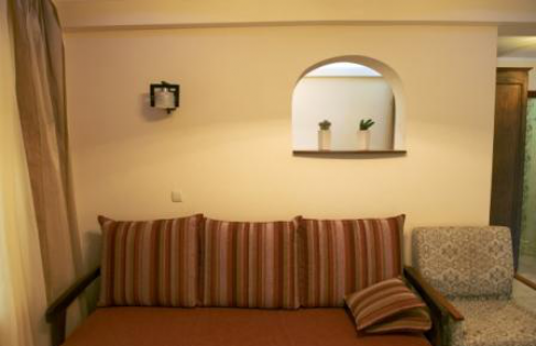 2-х комнатный номер с видом в сад на первом этаже, состоящий из двух раздельных комнат (не разделены дверью) – спальня и комната для отдыха.