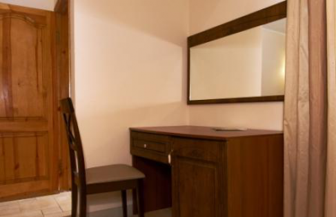 Одна односпальныя кровать, мини-холодильник, шкаф, туалетный столик, ТВ (61 канал), ванная комната с душем, электрочайник.