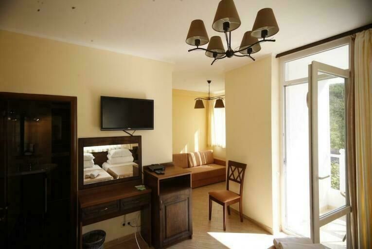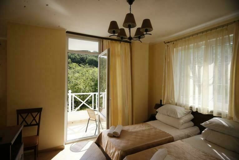 Путешествие с семьейТишина и спокойствие в горах.Очень клёвый отель. У нас был большой чистый номер на втором этаже. Шикарные матрасы. Очень уютный, просторный балкон, можно пить чай на закате, чистейший горный воздух. Вода в кулерах. Есть стиральные машины, всегда можно постирать вещи, погладить. Все в свободном доступе. Стильный кухонный уголок. Мы завтракали с удовольствием. Приезжали на машине, до побережья мин 30. В отеле и вокруг тишина, нет толп людей, прям как мы любим. С нами была маленькая собачка, заселили спокойно. Хозяйка приветливая, приятная, абсолютно ненавязчивая, все рассказала, показала. Мы были во многих отелях и этот один с лучших и по качеству услуг и по цене. Рекомендую.