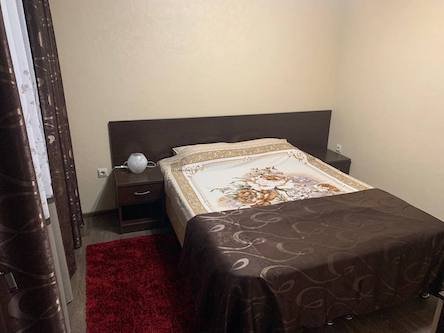Одна двуспальная кровать, косметический столик, шкафы для одежды, с/у, душ, ТВ.