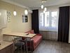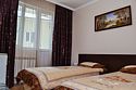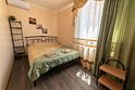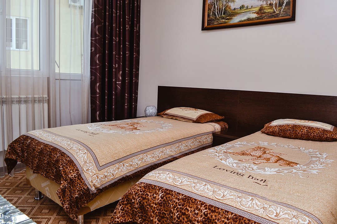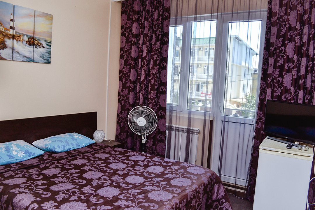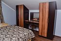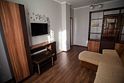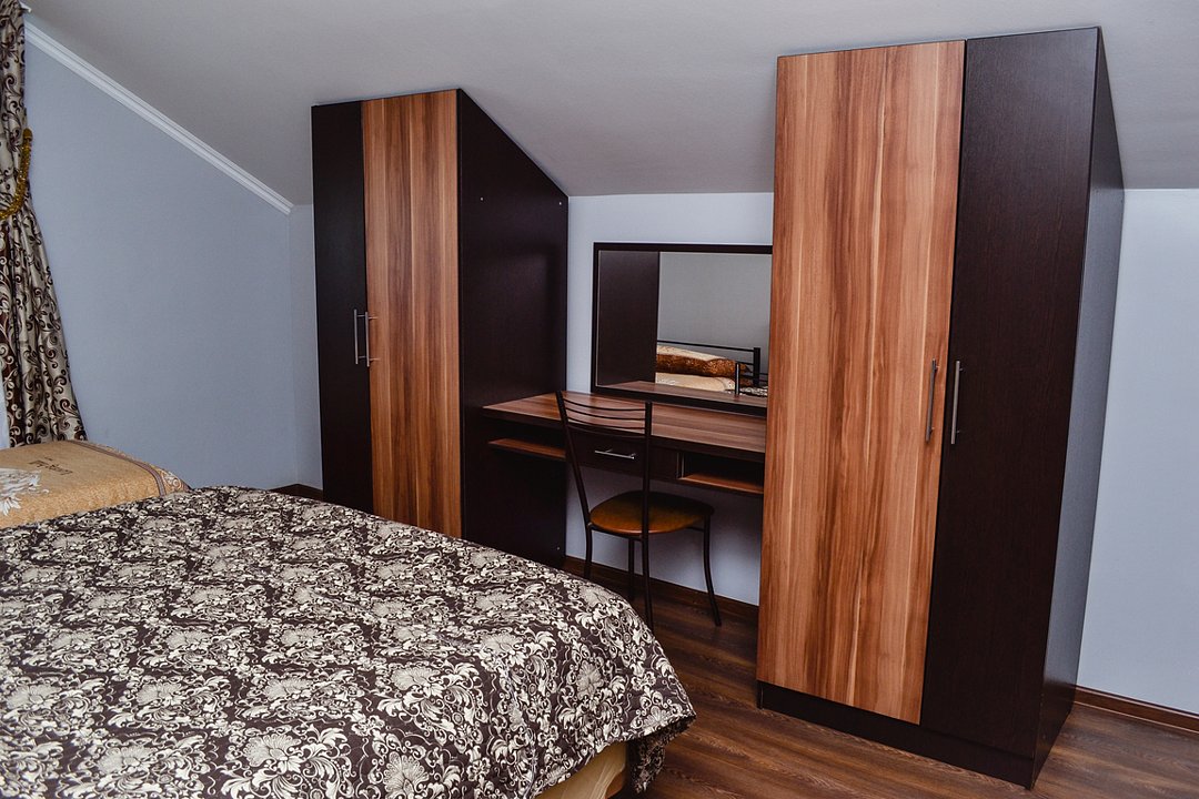 Одна двуспальная или две односпальные кровати, косметический столик, шкафы для одежды, с/у, душ, ТВ.
