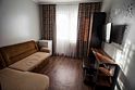 Одна двуспальная кровать, одна односпальная кровать, двуспальный диван как основное место, косметический столик, шкафы для одежды, с/у, душ, ТВ.