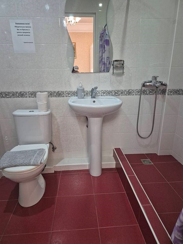 Размещение в данной категории номера возможно 5-ти человек, максимум 6-ти (с дополнительным местом). Номера располагаются на 5 этаже, лифта нет. Обращаем Ваше внимания,что в санузле потолок мансардного типа, то есть чуть ниже, чем в номерах с 2 по 4 этажи. Для Вашего комфорта в ванной комнате предоставляются косметические принадлежности ( гель для душа, шампунь, мыло).Услуги и удобства