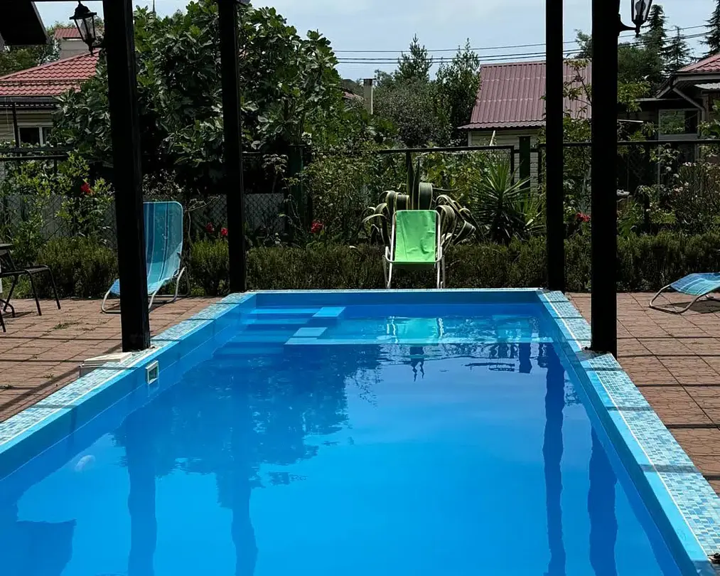 телевизор, Wi-Fi, холодильник, кондиционер, фен, микроволновая печь, ванна, санузел, банные полотенца, две односпальные или большая двуспальная кровать, диван, стулья, обеденный стол, зеркало, кухня, набор посуды, чайник, отдельный вход в номер, плиточное покрытие, вид во двор, кухонная посуда, стаканы, кухонная утварь, столовые приборы, тумба, туалетные средства, сплит-система, мангал, принадлежности для барбекю, сушилка для белья, мини-кухня, гостиничная парфюмерия, номер для некурящих, вид на бассейн, общественный бассейн, двуспальный раскладной диван-кровать, мыло, открытый шкафВ апартаментах