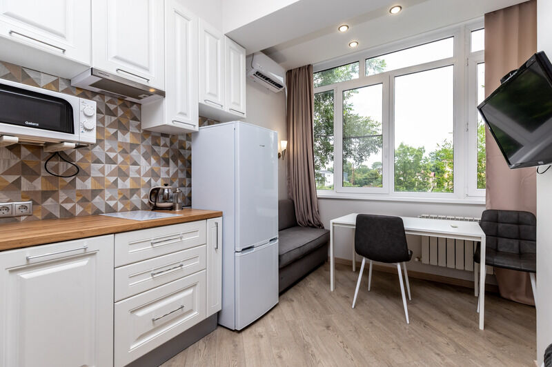 В Апартаментах есть всё для комфортного проживания: современное кухонное оборудование, набор посуды и столовых приборов, качественная сантехника. Уборка перед заселением, постельное белье и полотенца уже включены в стоимость проживания.