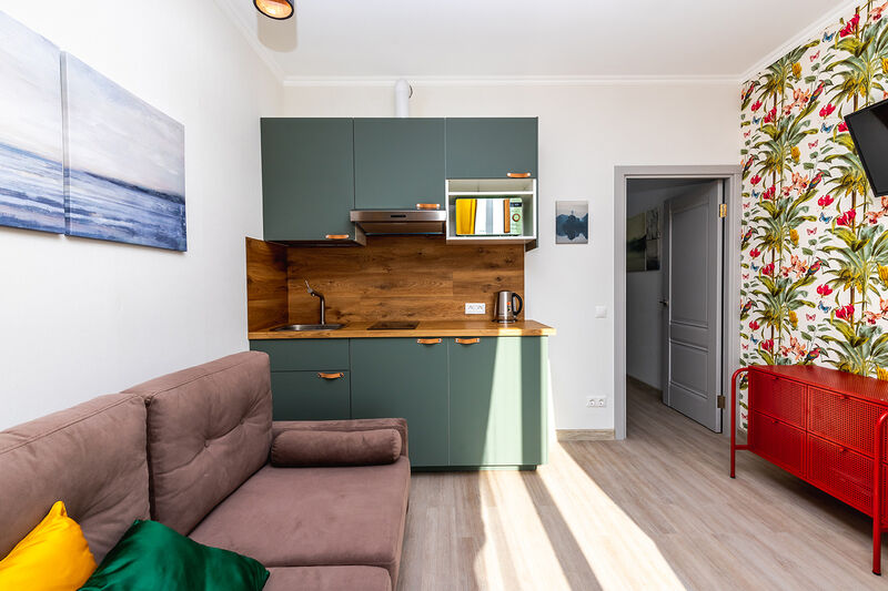 В Апартаментах есть всё для комфортного проживания: современное кухонное оборудование, набор посуды и столовых приборов, качественная сантехника. Уборка перед заселением, постельное белье и полотенца уже включены в стоимость проживания.
