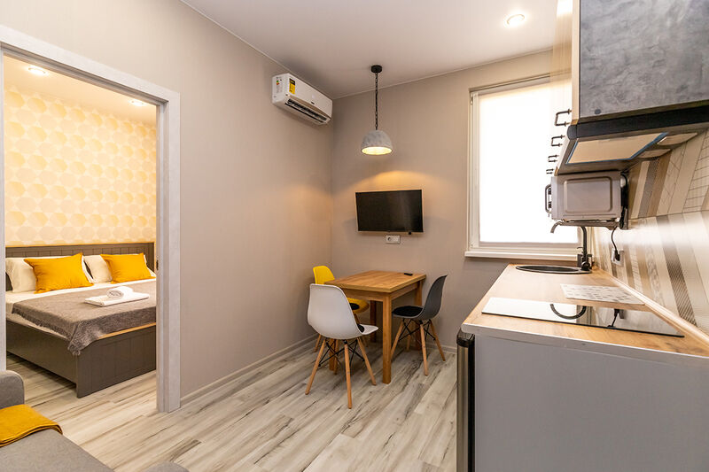 В Апартаментах есть всё для комфортного проживания: современное кухонное оборудование, набор посуды и столовых приборов, качественная сантехника. Уборка перед заселением, постельное белье и полотенца уже включены в стоимость проживания.