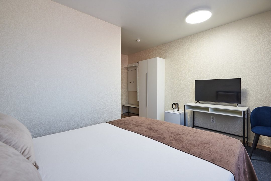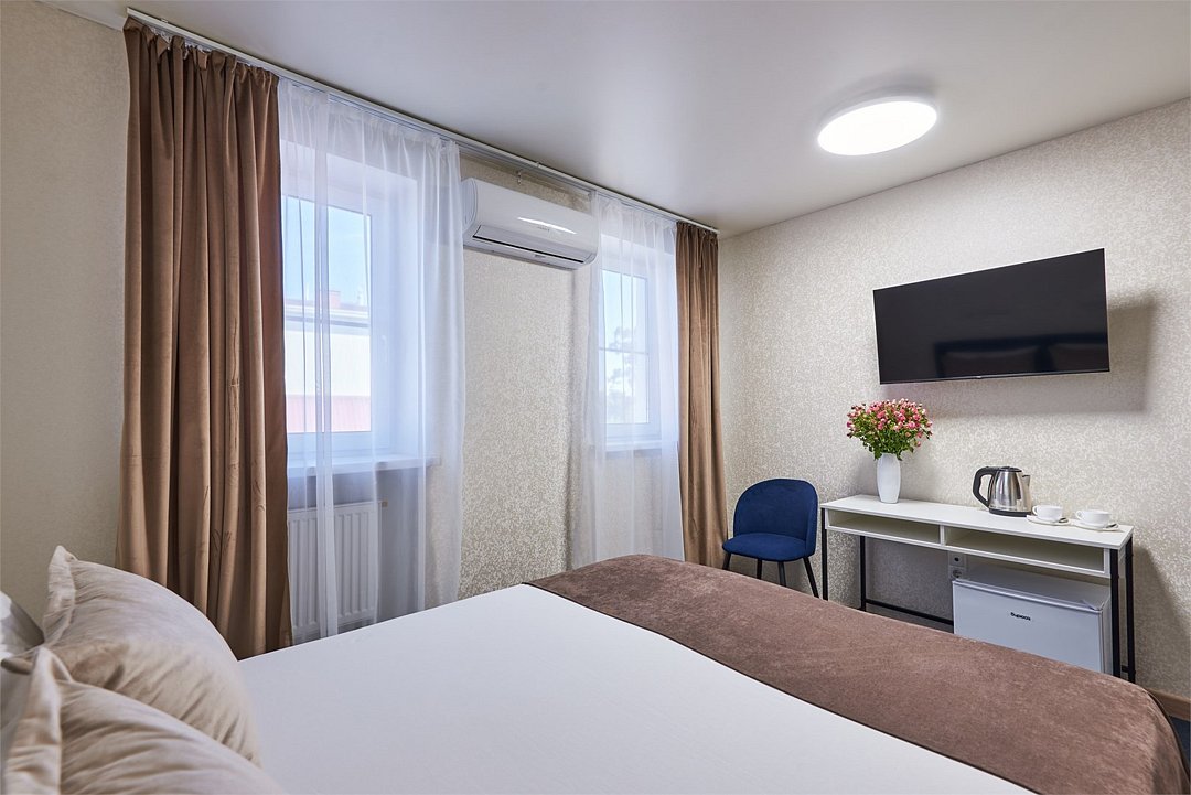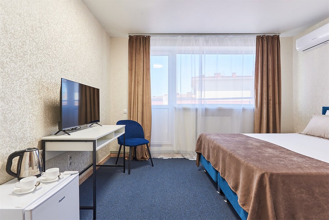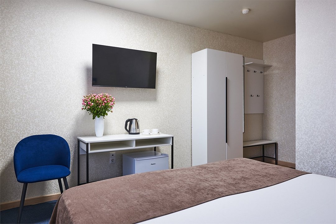 кабельное телевидение, Wi-Fi, кондиционер, фен, ванная комната, санузел, банные полотенца, тапочки, гигиенические средства, две односпальные или большая двуспальная кровать, гладильная доска, шкаф для одежды, вешалки, зеркало, мебельный гарнитур, обслуживание номеров, чайник, унитаз, раковина, ковровое покрытие, отопление, душ, вид на город, вид во двор, стаканы, стул, стол, туалет, сплит-система, диван-кровать, раскладной диван, телевизор с плоским экраном, мини-холодильник, номер для некурящих, уборка номера, вешалки-плечики, мыло, прачечная (за дополнительную плату)В гостиничном номере