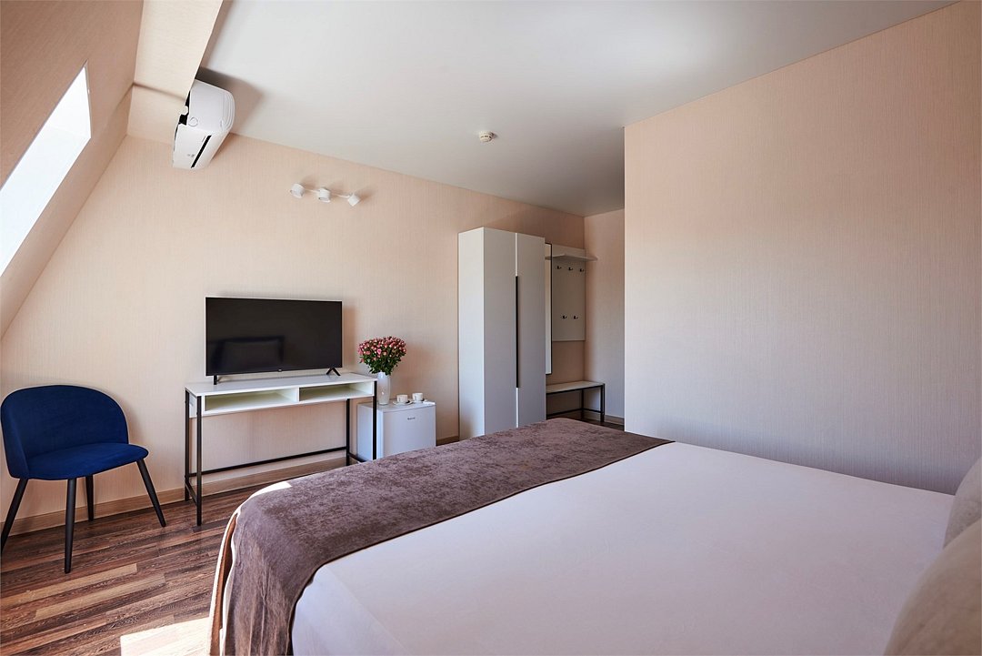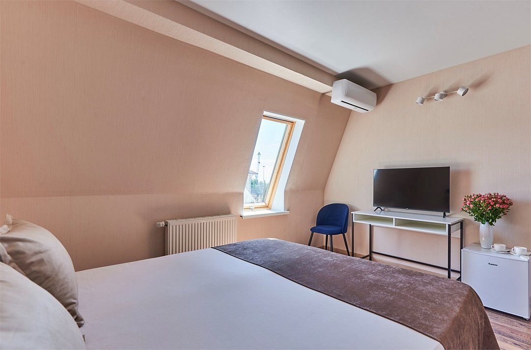 кабельное телевидение, Wi-Fi, кондиционер, фен, ванная комната, санузел, банные полотенца, тапочки, гигиенические средства, косметические средства, две односпальные или большая двуспальная кровать, гладильная доска, шкаф для одежды, вешалки, зеркало, мебельный гарнитур, обслуживание номеров, чайник, унитаз, раковина, отопление, душ, ламинат, стаканы, стул, стол, туалетные средства, туалет, сплит-система, сушилка для белья, телевизор с плоским экраном, мини-холодильник, мансардные окна, номер для некурящих, уборка номера, услуги прачечной (платно), вешалки-плечики, мыло, затемняющая штора, прачечная (за дополнительную плату), без питомцевВ гостиничном номере