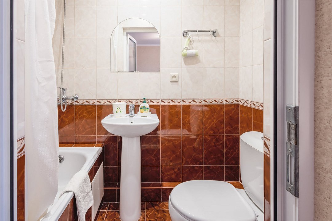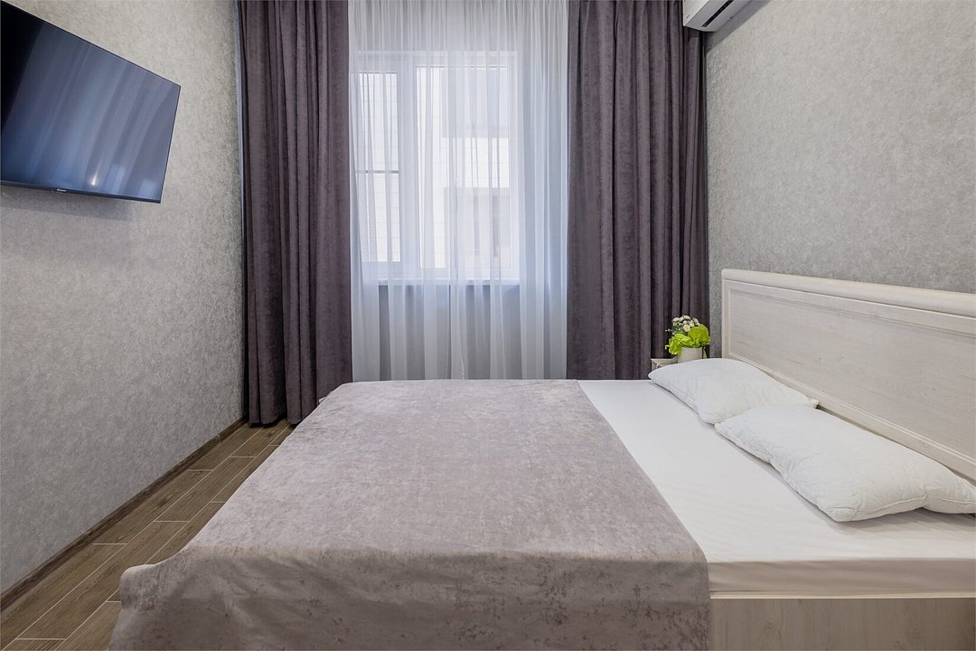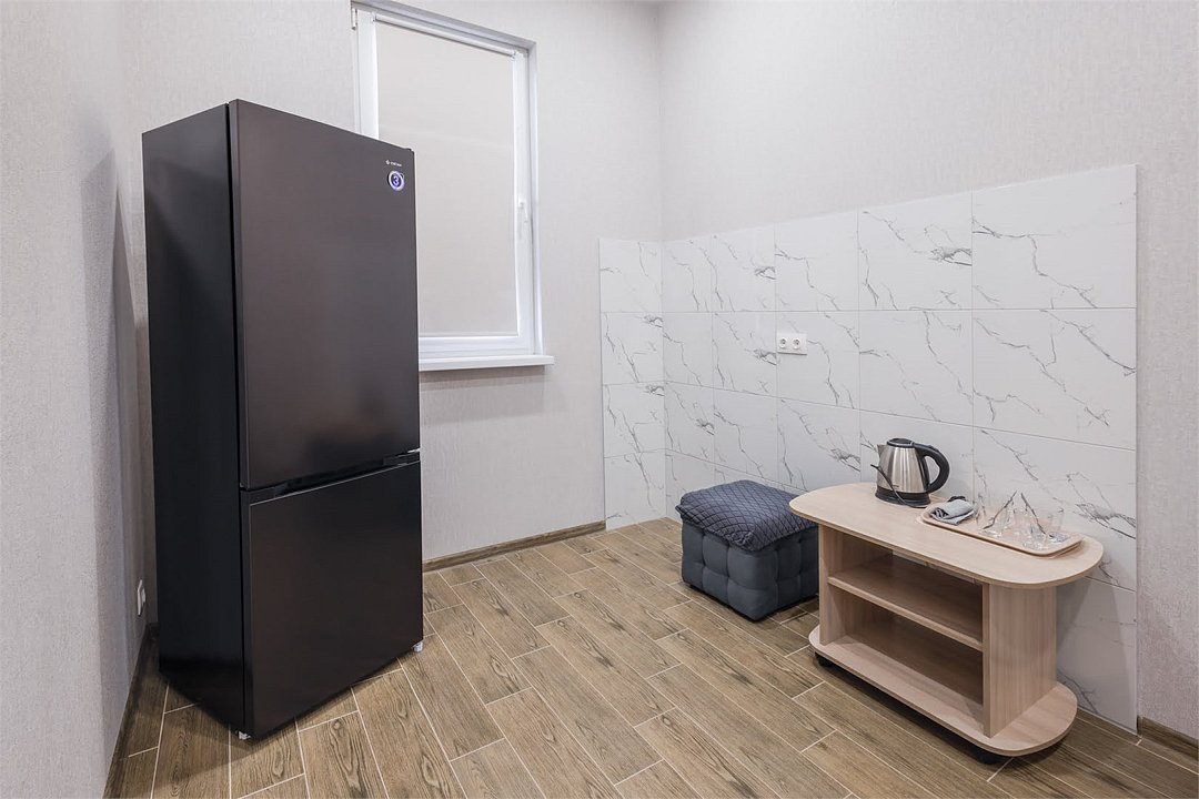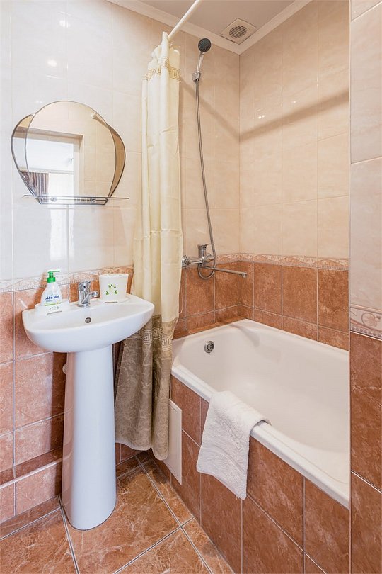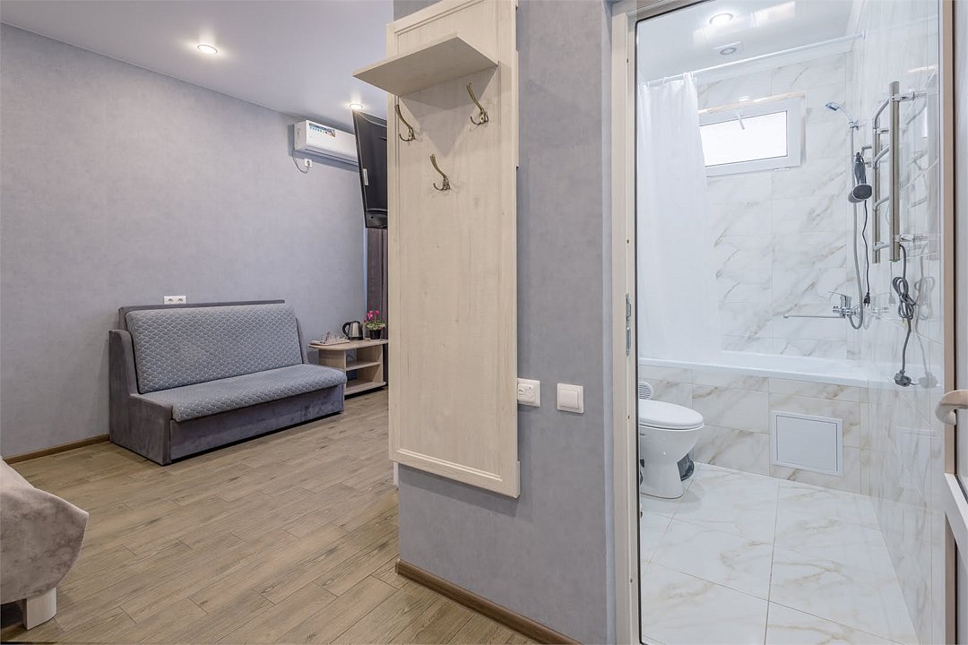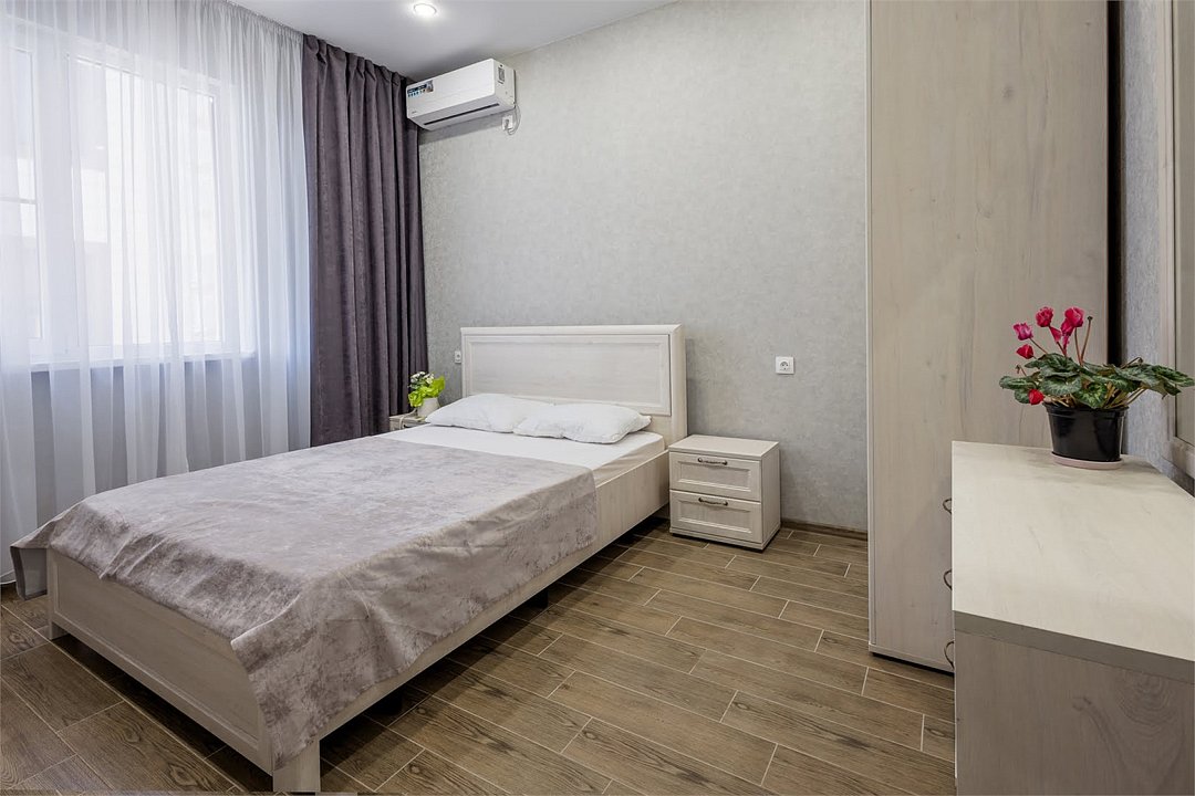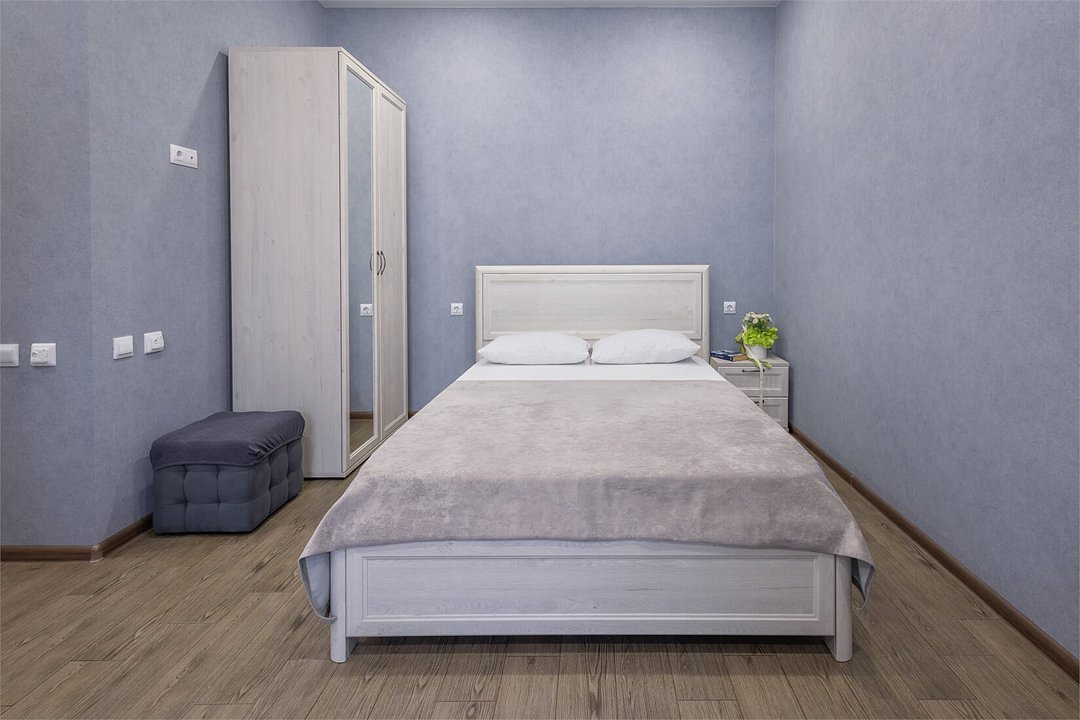 Уютный двухкомнатный четырехместный номер с новым ремонтом оснащен всем необходимым для комфортного проживания: удобные кровати, современный санузел, стиральная машина в номере, кондиционер, холодильник и бесплатный Wi-Fi. В номере также имеется рабочий стол, телевизор, фен, тапочки, халаты а также туалетные принадлежности . Уборка проводится по вашему требованию, что обеспечивает чистоту и порядок.Услуги и удобства