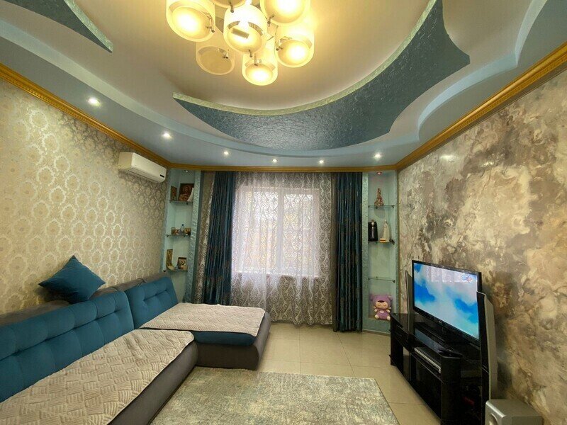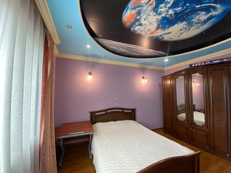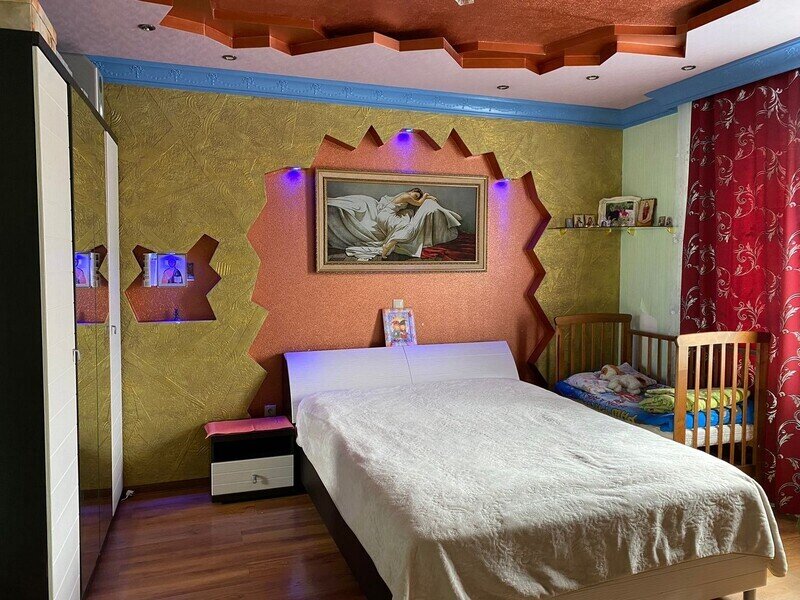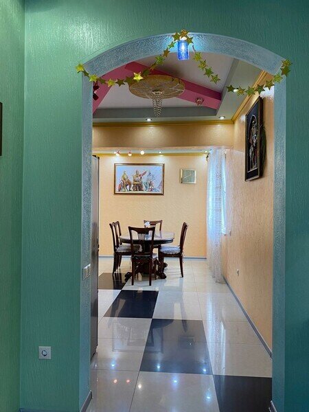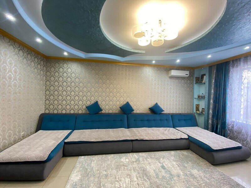 В номере: 3 двуспальные кровати и 1 двуспальный диван. Имеется телевизор, кондиционер, шкаф, вешалка, обеденный стол, комод, электрическая плита, СВЧ, духовой шкаф, чайник, фен, холодильник, стулья, посуда и столовые приборы, стиральная машина, сушилка для белья, утюг, гладильная доска. Индивидуальная раздельная ванная комната: душ, раковина, туалет.