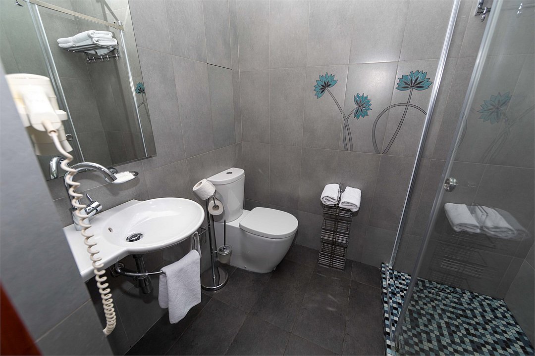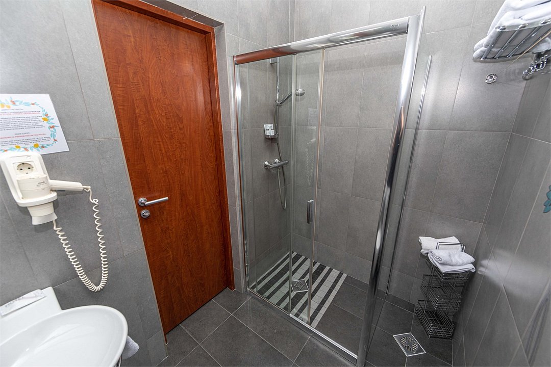 Двухместный номер с одной двуспальной кроватью, идеален для размещения двух человек. Дети до 5 лет размещаются бесплатно без предоставления места. Номер расположен на первом этаже, без балкона. Собственная душевая с банными принадлежностями.Услуги и удобства