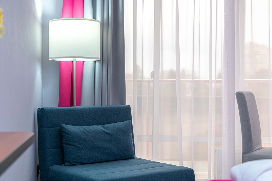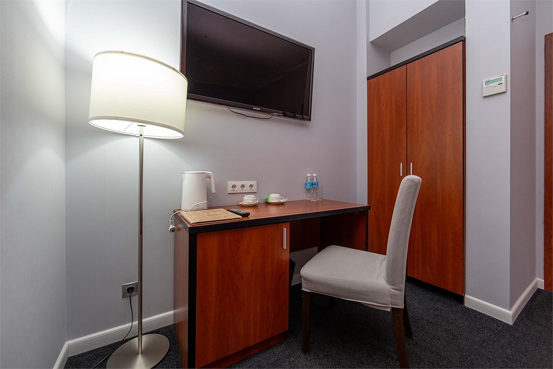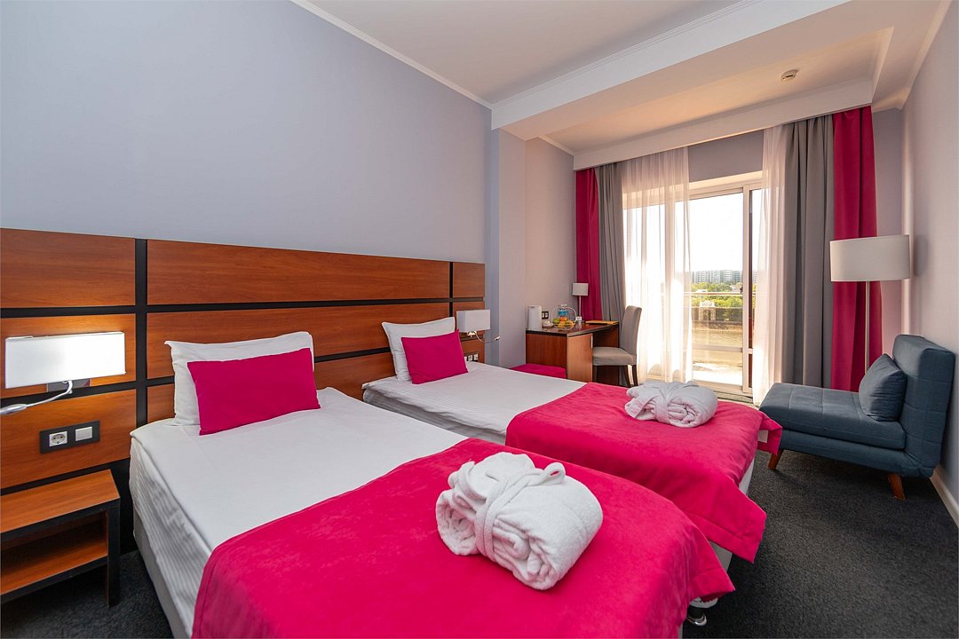 Уютный номер на одного или двоих человек площадью от 18 м2, отлично подходит для бизнес-поездки или отдыха. Бизнес-стандарт включает две раздельные кровати или одну двуспальную кровать, балкон. В номере есть всё необходимое для создания благоприятной атмосферы отдыха для восстановления сил после активного дня. Ванная комната оснащена душем с набором качественной косметической продукции. Забронируйте Бизнес-стандарт и насладитесь отдыхом в центре Адлера на берегу реки Мзымта!Услуги и удобства