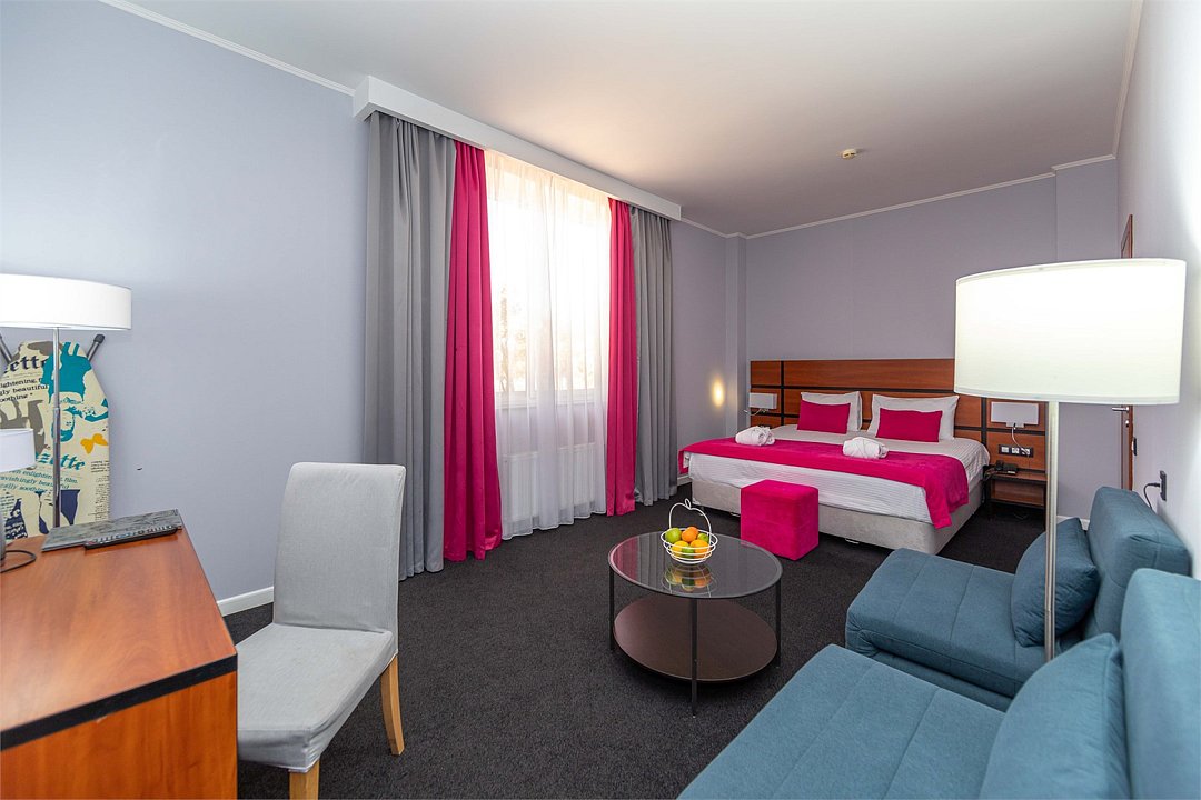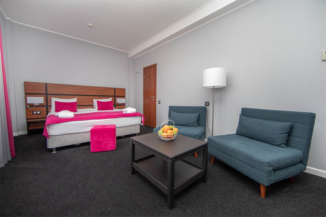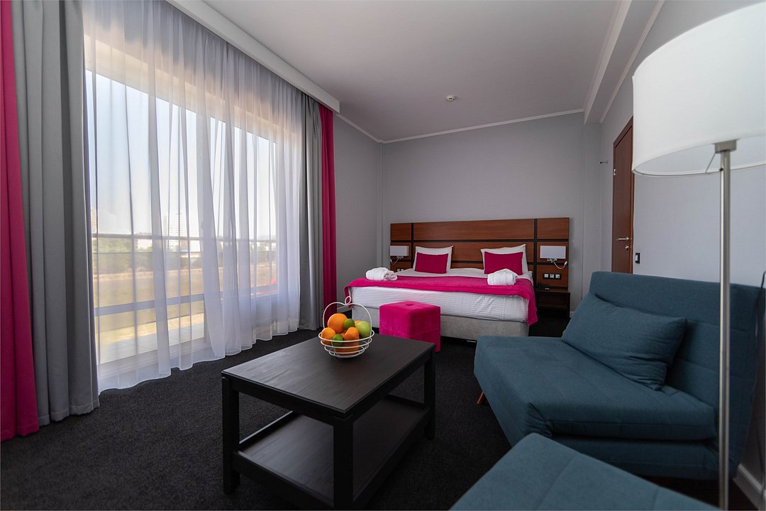Путешествие с семьейОчень хорошие два дня в АдлереОтель произвел очень приятное впечатление . Очень хорошее месторасположение- набережная, пляж, кафешки- рестораны, все в шаговой доступности. Рядом находится аэропорт и самолеты пролетают над отелем, ночью при закрытом балконе и работающем кондиционере не мешало спать совсем, хотя у меня очень чуткий сон. Внешний вид аккуратный, территория ухоженная. Регистрация прошла быстро и без проблем. Повысили категорию номера- было очень приятно, и также дали возможность позднего выезда до 18.00 , а потом дали возможность пользоваться территорией отеля до 21.00( вылет поздний). Номер просторный, чистый и хорошо оборудованный. Постельное белье свежее, а мебель выглядит новой. В номере есть все необходимые для хорошего отдыха. Персонал дружелюбный и внимательный. Администраторы всегда готовы помочь и ответить на любые вопросы. Обслуживание в ресторане тоже оставило положительные впечатления. Завтрак нормальный. На территории отеля есть бассейн, что позволило отлично провести время и отдохнуть. И очень понравилось, что есть трансфер с жд вокзала и в аэропорт. Так получилось, что своя машина была занята( или не смогла отвезти) , отель за свой счёт вызвал такси в аэропорт. Спасибо за отдых