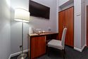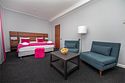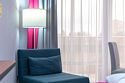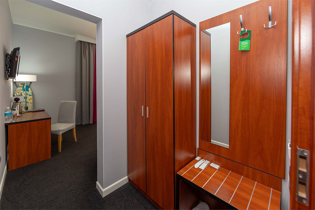 Двухместный номер, идеален для размещения семьи из двух взрослых и одного ребенка. В номере есть возможность установить одно дополнительное место или детскую кроватку. Размещение третьего гостя в номере на дополнительном месте: до 17 лет – 1980 рублей за ночь. Номера расположены со второго по пятый этажи. Большое панорамное окно с выходом на индивидуальный балкон. Собственная душевая с банными принадлежностями.Услуги и удобства
