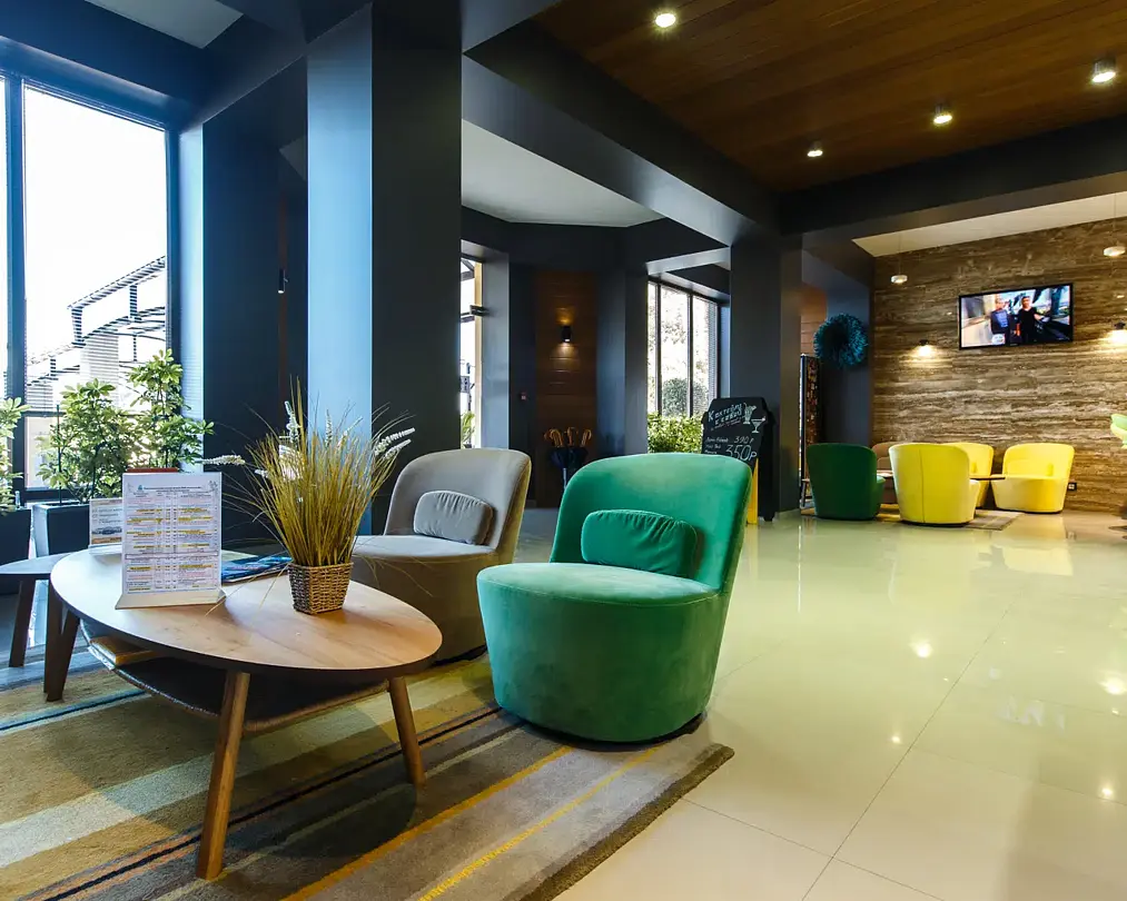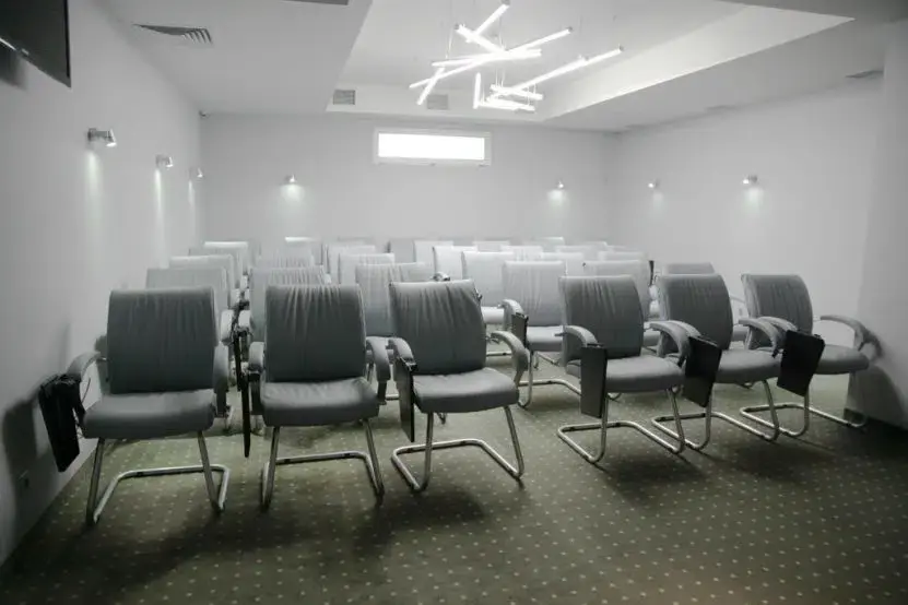 Конференц-зал расположен на цокольном этаже отеля и сочетает в себе элегантность и функциональность. Просторное, хорошо освещённое естественным светом помещение оборудовано всем необходимым для проведения деловых мероприятий — от семинаров и тренингов до встреч с партнерами и частных торжеств.
