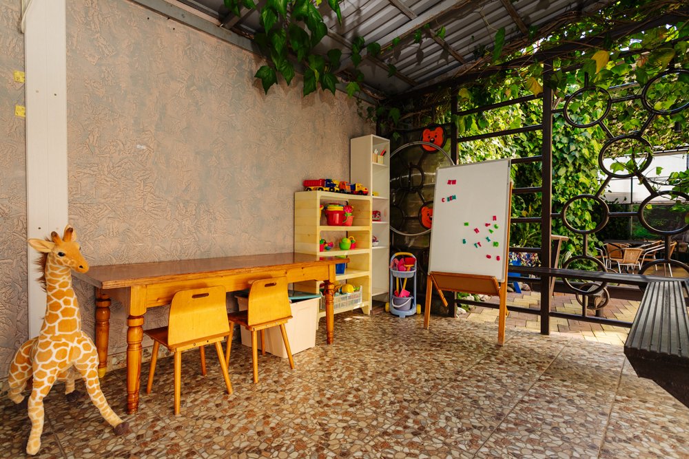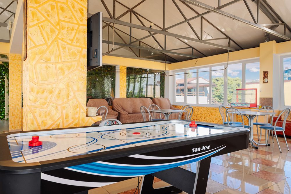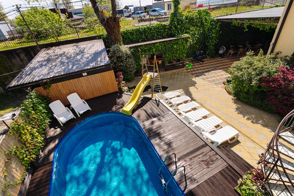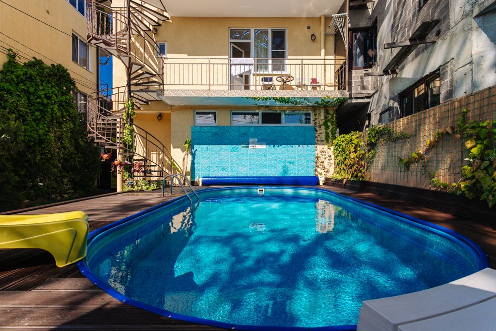 На территории гостевого дома имеются зеленый внутренний двор, детская площадка, бассейн, бильярдный стол. Для удобства гостей оборудована общая кухня на этаже. Для всех гостей гостевого дома предоставляется интернет Wi-Fi.
