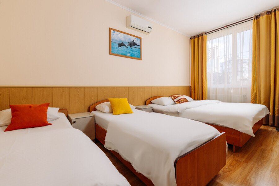 Стандарт с 2спальной и 1 спальной кроватью до 4-х гостей с видом на море