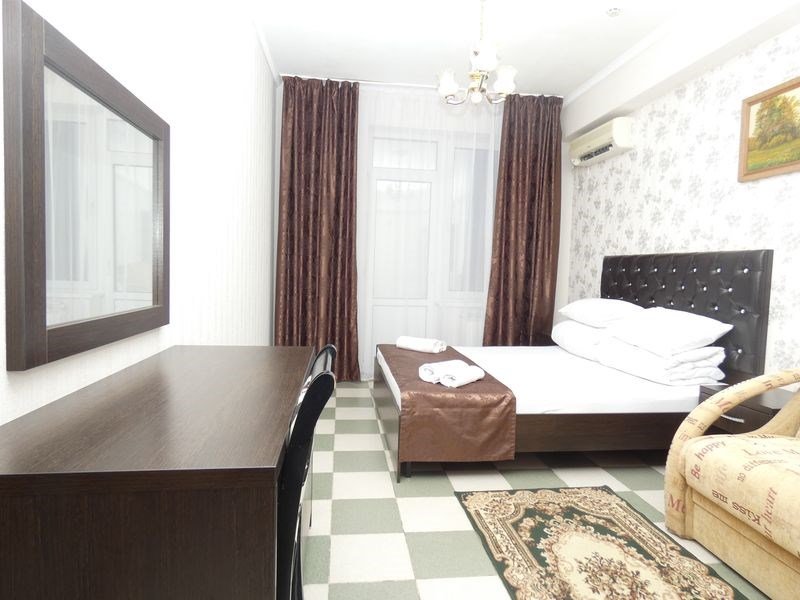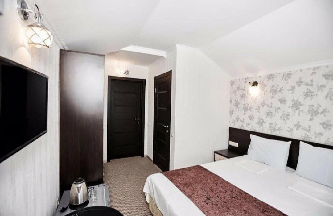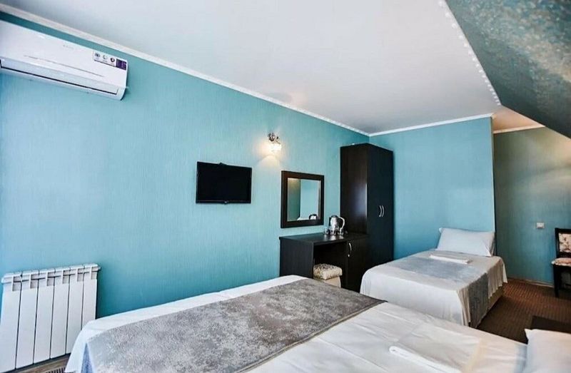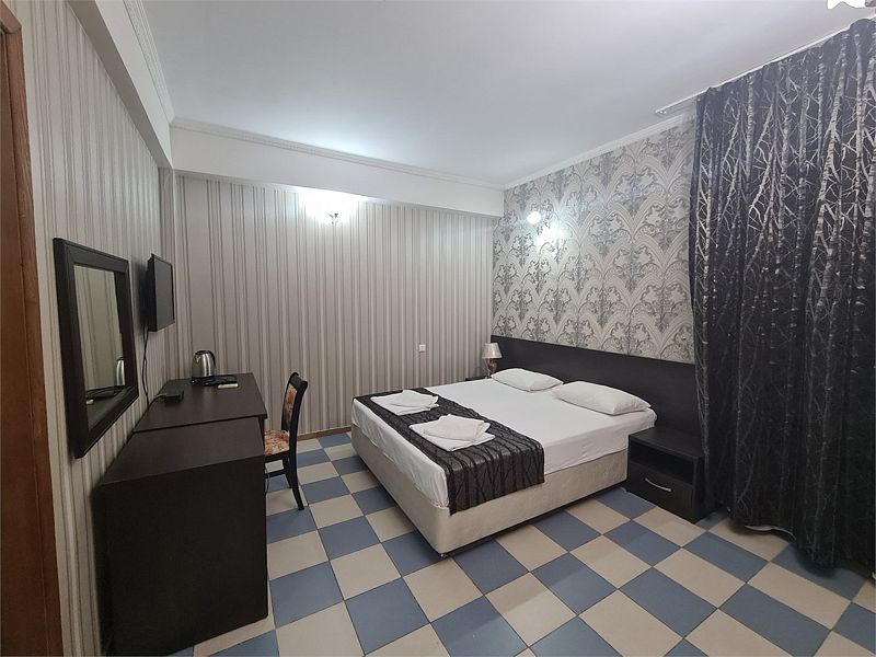 Оснащён индивидуальным сан узлом, сплит-системой, мини холодильником, чайником, Wi-fi, в некоторых номерах есть балкон.