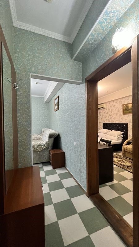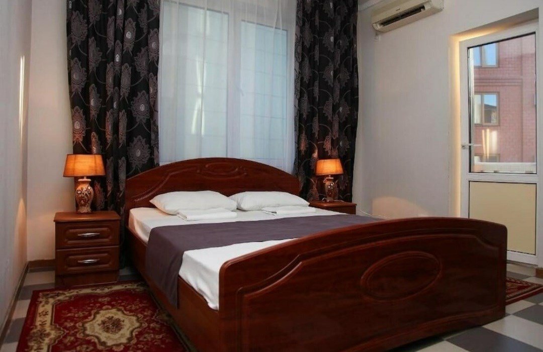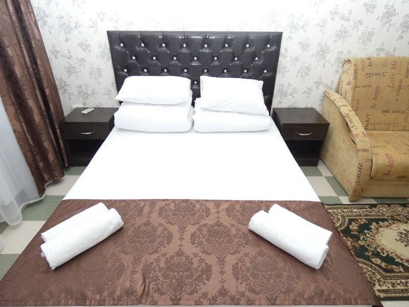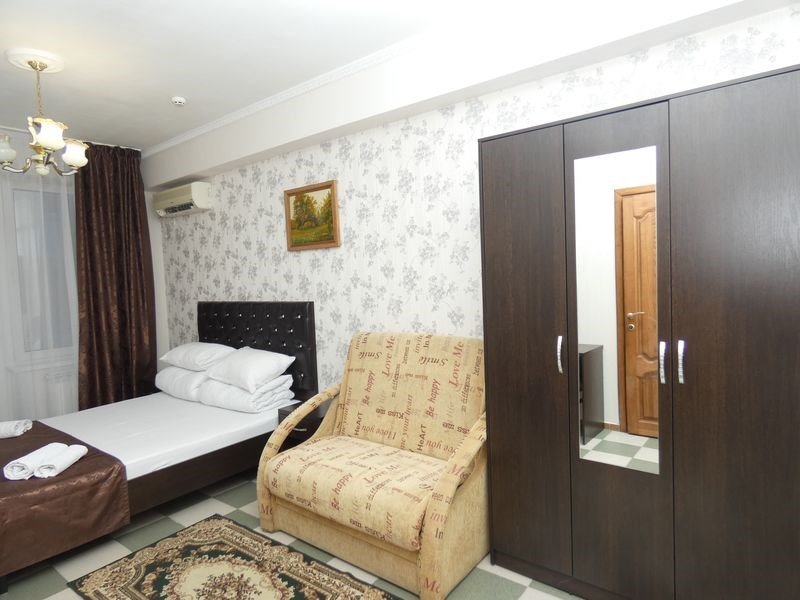 Wi-Fi, кондиционер, фен, утюг, ванная комната, ванна или душевая кабина, банные полотенца, тапочки, балкон, двуспальная кровать, односпальная кровать, гладильная доска, тумбы, стулья, шкаф для одежды, вешалки, журнальный столик, письменный стол, зеркало, две комнаты, чайник, унитаз, раковина, отопление, вид на город, кулер на этаже, плиточное покрытие, вид во двор, стаканы, стул, туалетные средства, туалет, сушилка для белья, диван-кровать, раскладной диван, телевизор с плоским экраном, мини-холодильник, рабочий столВ номере