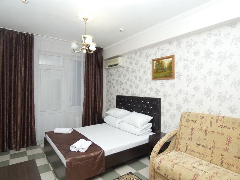 Оснащён индивидуальным сан узлом, сплит-системой, мини холодильником, чайником, Wi-fi, в номере так же есть балкон.
