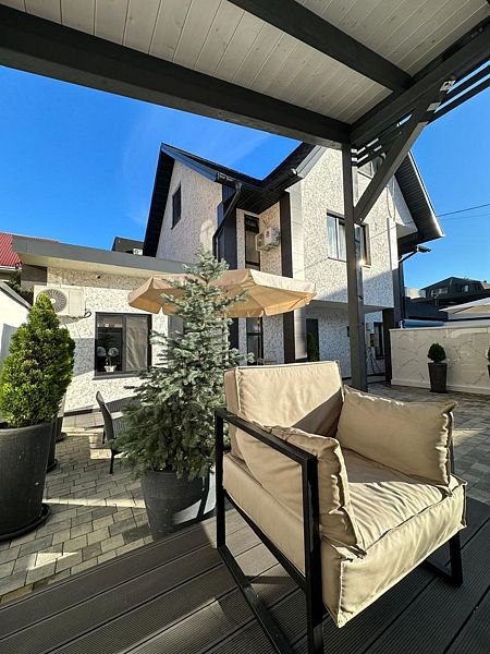 Коттедж площадью 190 кв. м с видом на сад, бассейн, во двор.