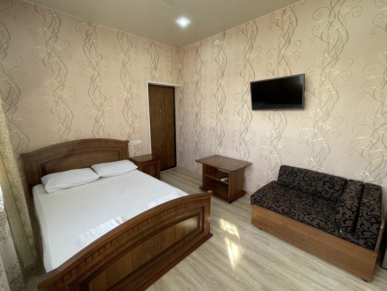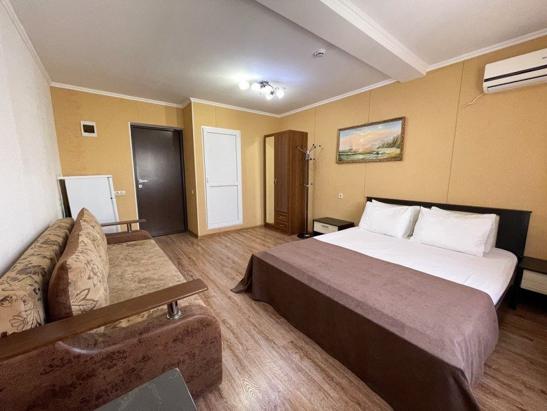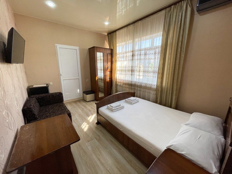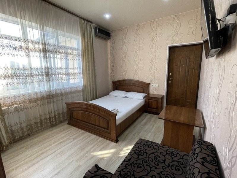 Двухместный номер с одной двуспальной кроватью. Напольное покрытие - кафельная плитка или ламинат. Расположены номера с первого по пятый этажи. В номере имеется холодильник, телевизор, кондиционер сплит-система, фен. В собственном санузеле - душ, имеется жидкое мыло, туалетная бумага . Номера комплектуются набором полотенец на каждого гостя, банное и лицевое.Услуги и удобства