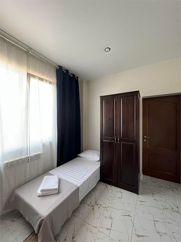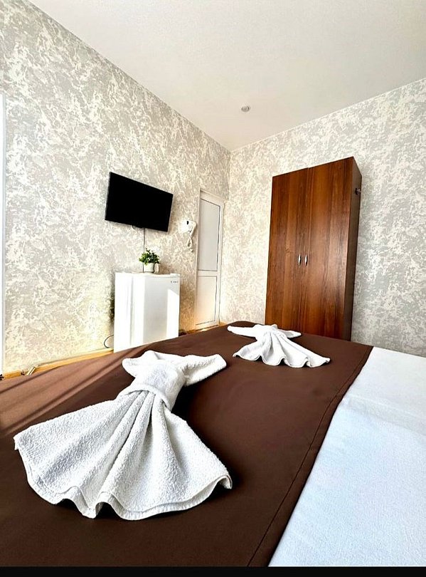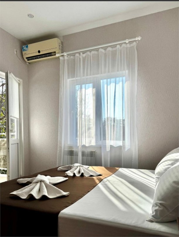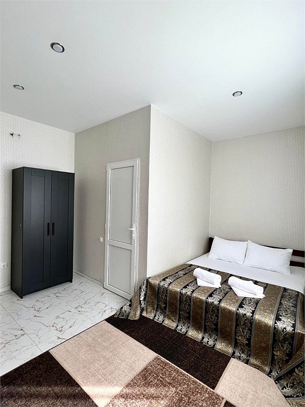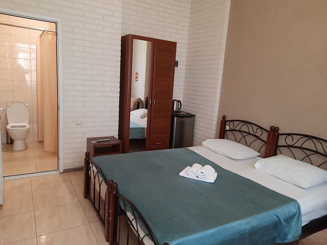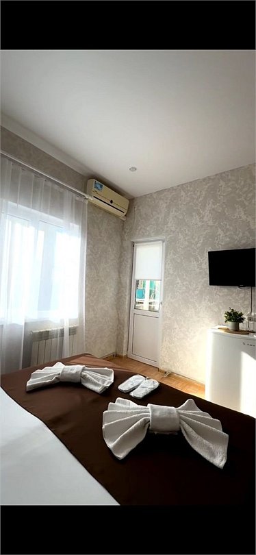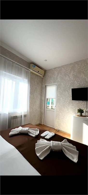 2хместный стандартный номер с удобствами. Расположен в 1 корпусе на Веселой. Площадь номера 20-22 кв.м. Новый ремонт. Качественная мебель. Кровать Queen Size (160*200) с мягким ортопедическим матрасом, постельное белье, полотенца. Возможна установка дополнительного места (еврораскладушка). ЖК телевизор, кондиционер. Индивидуальное отопление обеспечивает круглогодичное проживание. Зимой холодно не будет. В ванной комнате душ, раковина, унитаз, зеркало, фен, мыло, гель. Пол-плитка.Услуги и удобства