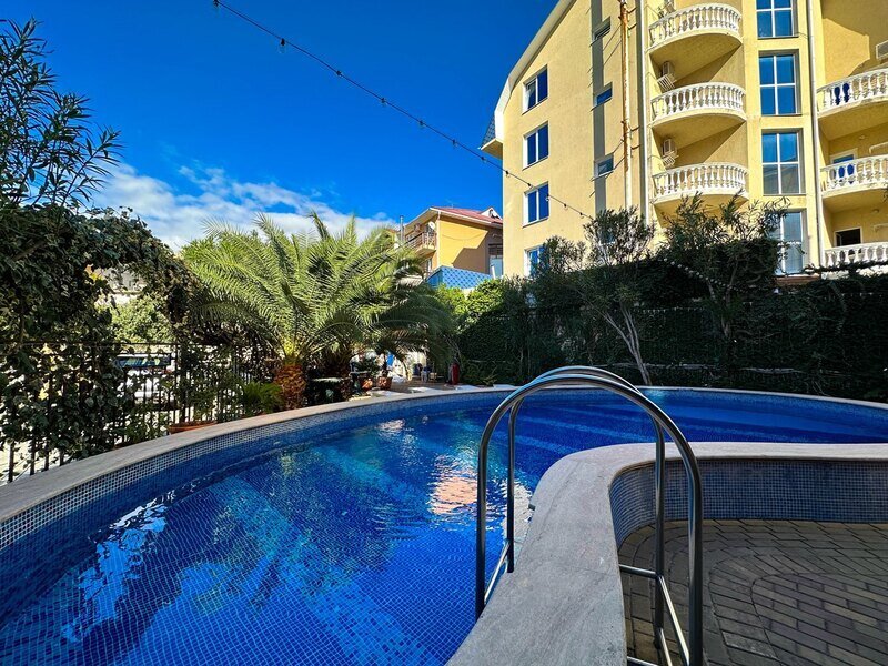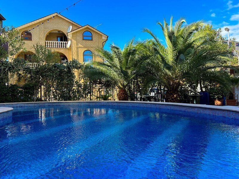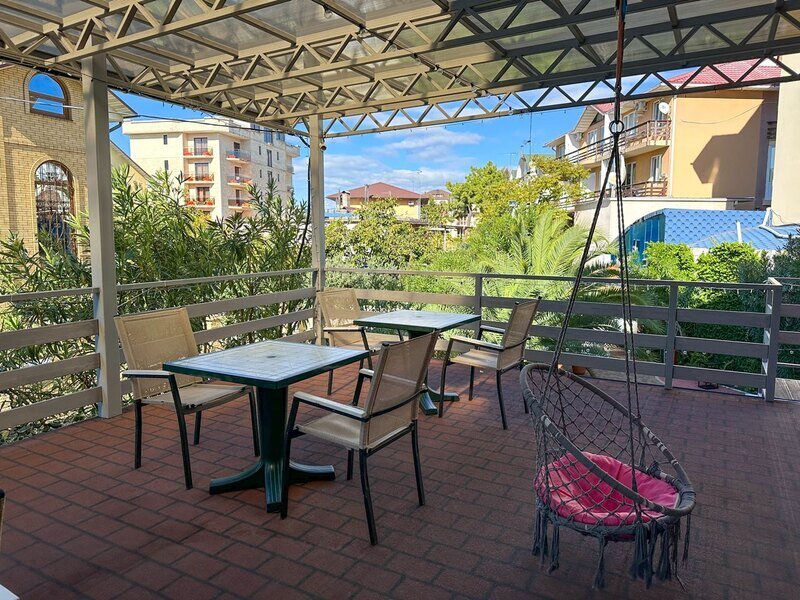 Кроме того, в здании гостевого дома есть общая кухня, где можно приготовить завтрак, обед или ужин. Территория гостевого дома просторная и удобная, оборудована для отдыха. На дворе находится бассейн с шезлонгами, уютные беседки и зоны отдыха, а также специальное место с мангалом. Гостям предоставлена терраса для принятия солнечных ванн. Все гости имеют доступ к Wi-Fi.