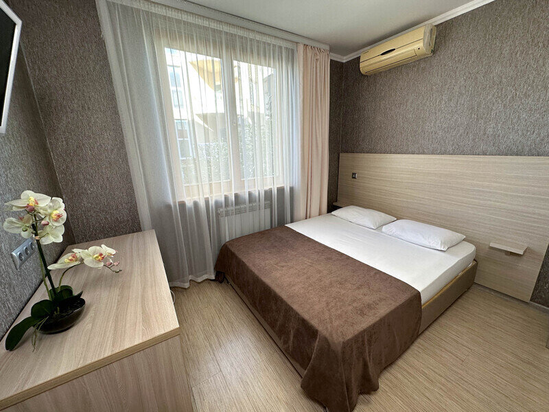 Сами номера гостевого дома представлены стандартными номерами, которые могут комфортно разместить четырех человек. Номера расположены в 4-этажном здании. В каждом номере есть удобное спальное место, рабочий стол, кондиционер, телевизор со спутниковыми каналами и просторный шкаф для хранения вещей. В собственных ванных комнатах гостей ожидают мягкие полотенца.