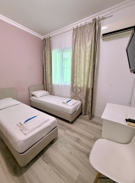 Гостевой дом предлагает для размещения туристов: двух-, трёх- и четырех местные комнаты, а также апартаменты с собственной кухней. Среди оснащения предусмотрены: необходимая мебель, телевизор, холодильник, кондиционер.