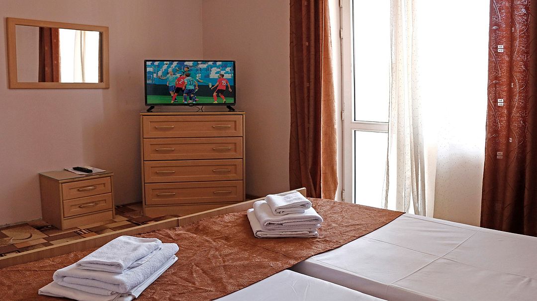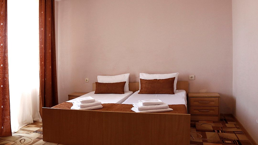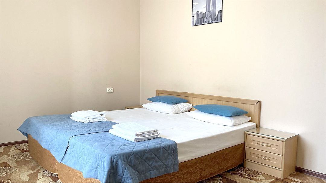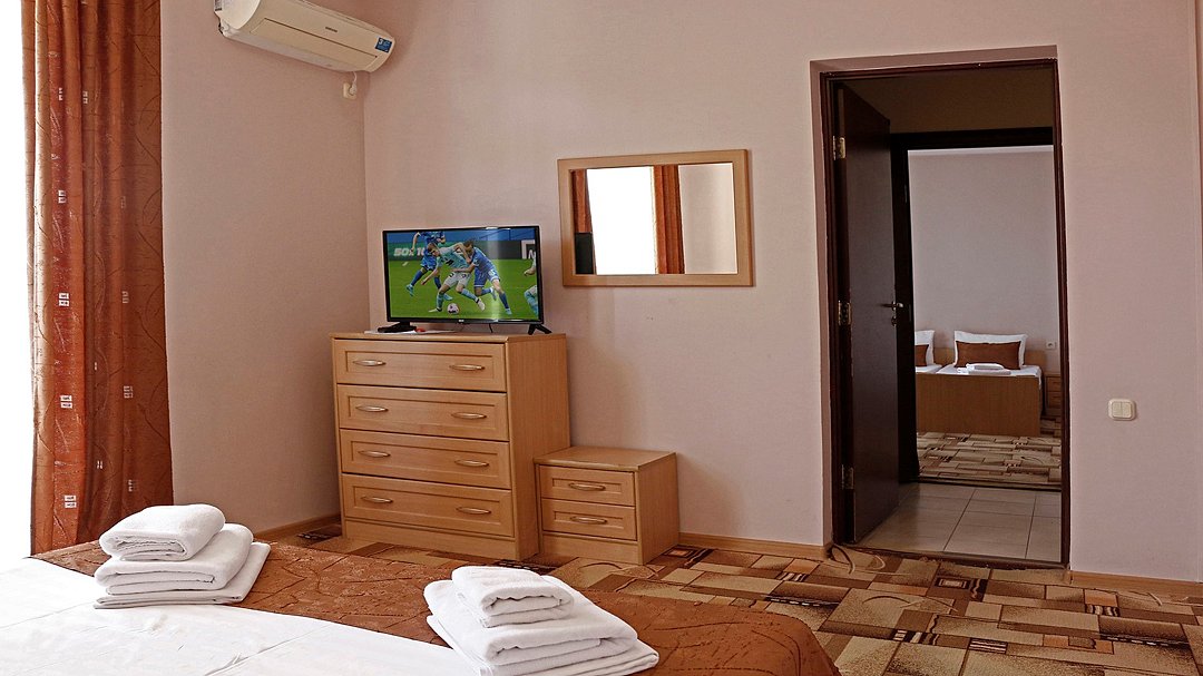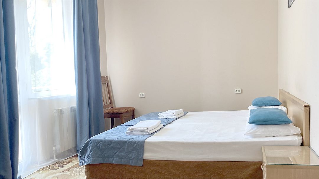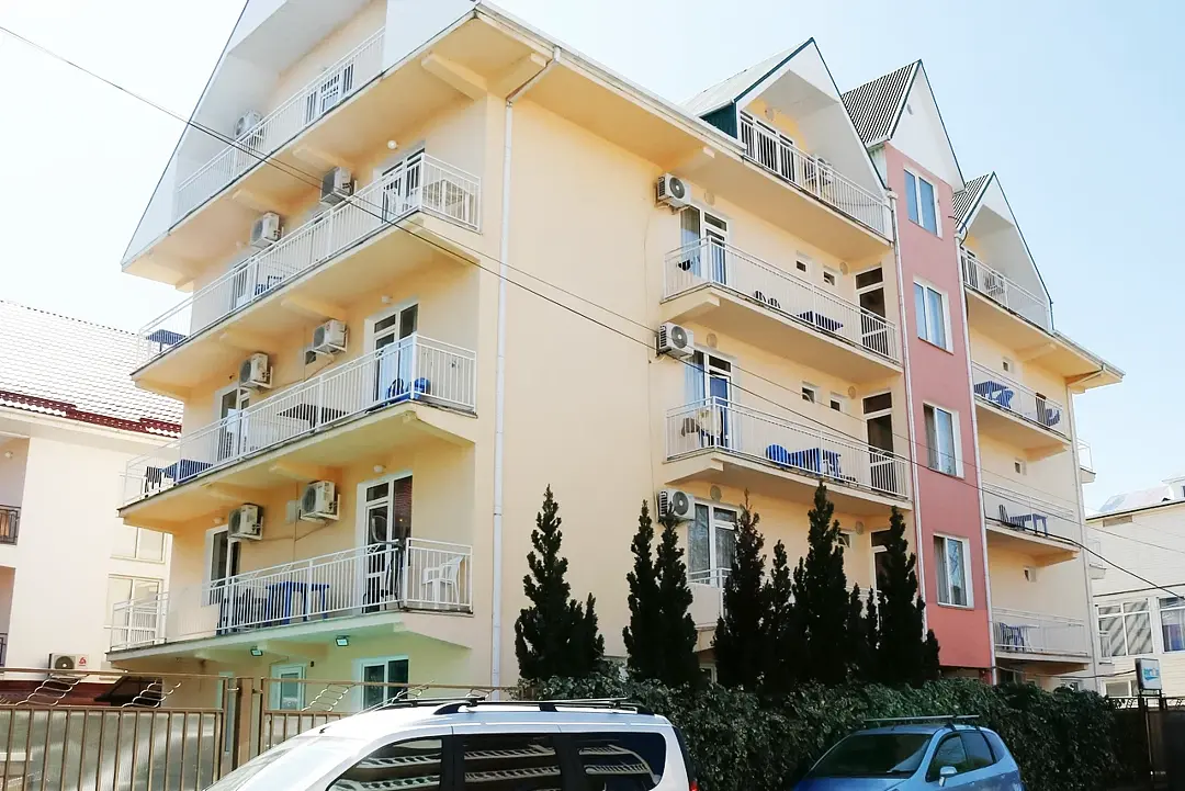 Пятиэтажный корпус с мансардой расположился в современном квартале Адлера. Жилой фонд, рассчитанный на 80 гостей, предлагает двух- и четырехместные номера разной категории комфорта. В каждом есть индивидуальный санузел с душем, холодильник, телевизор, установлена сплит-система или кондиционер. В распоряжении гостей открытый летний бассейн.