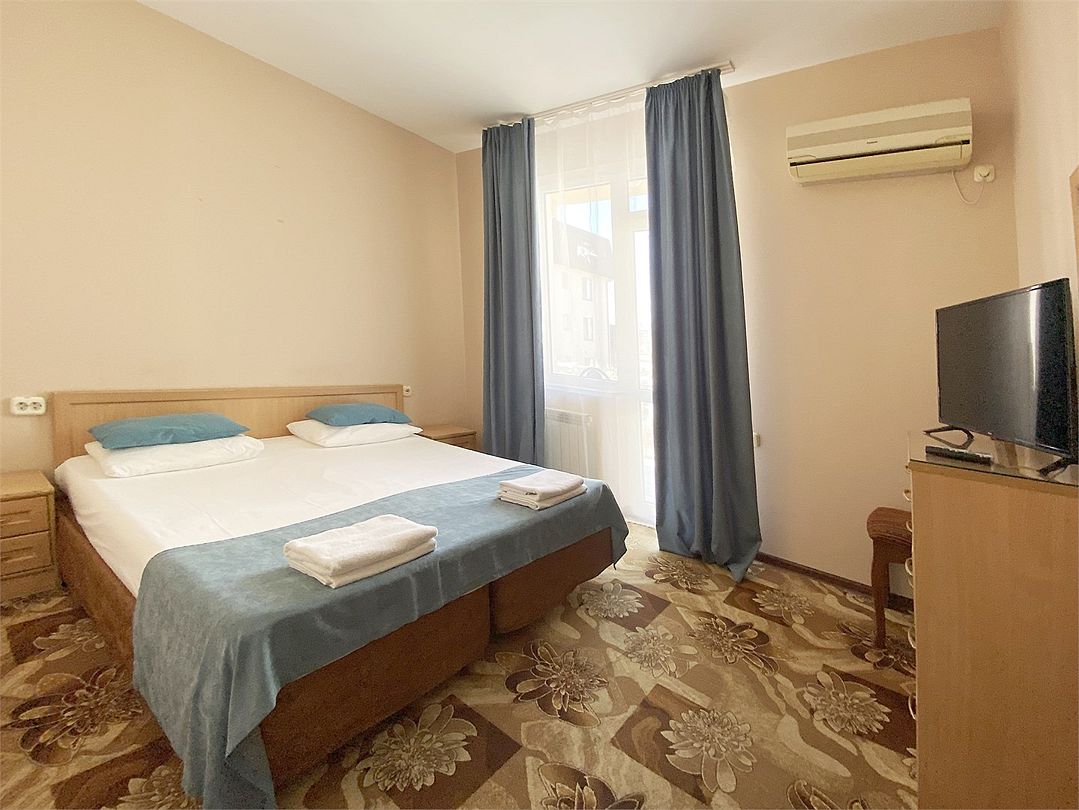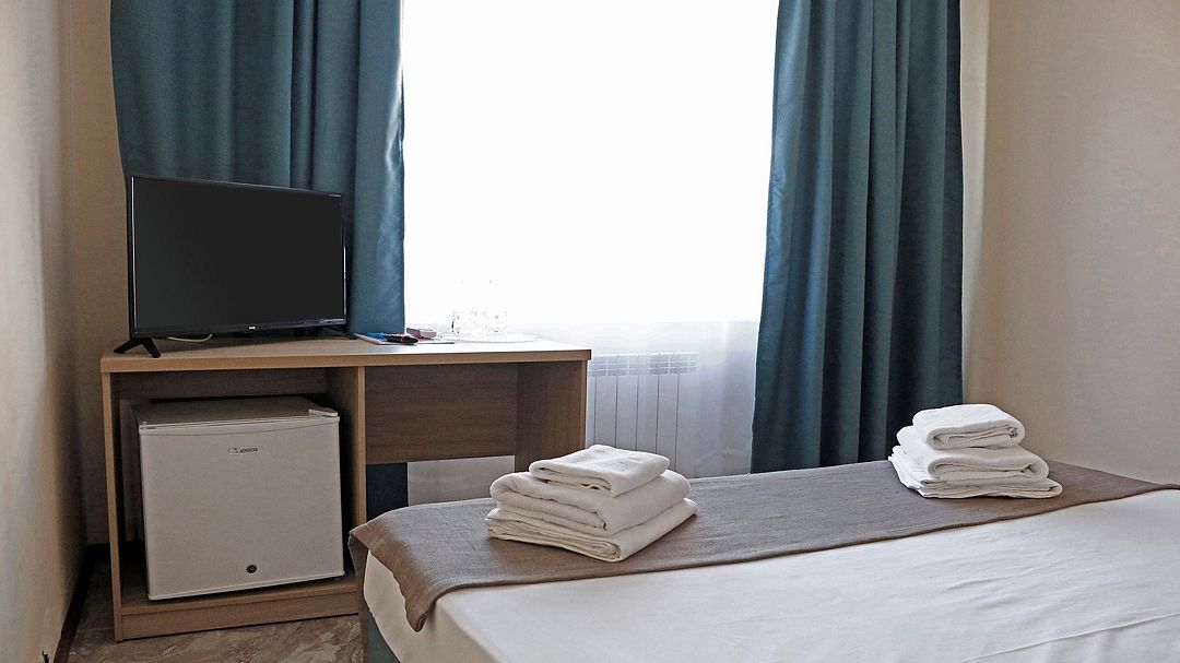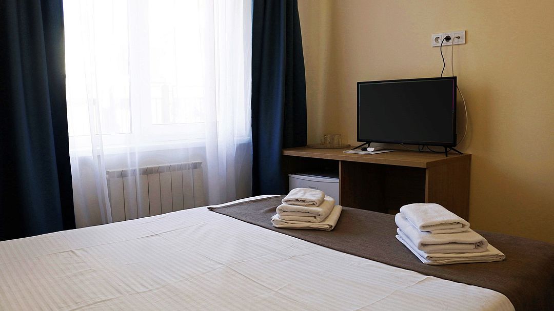 Уютный однокомнатный номер с одной двуспальной кроватью.