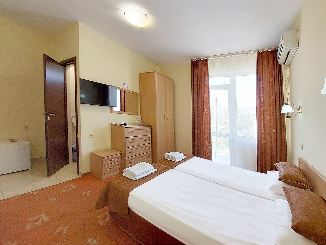 Уютный однокомнатный номер с одной двуспальной или двумя односпальными кроватями и балконом.