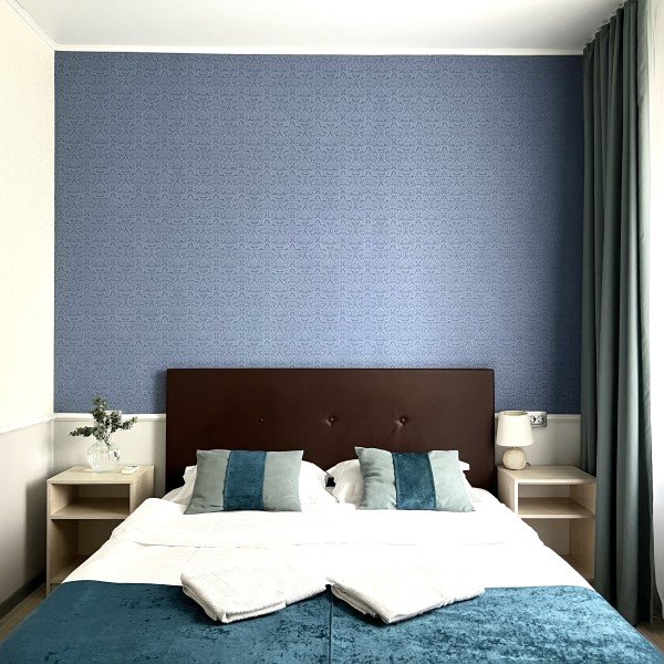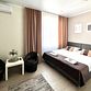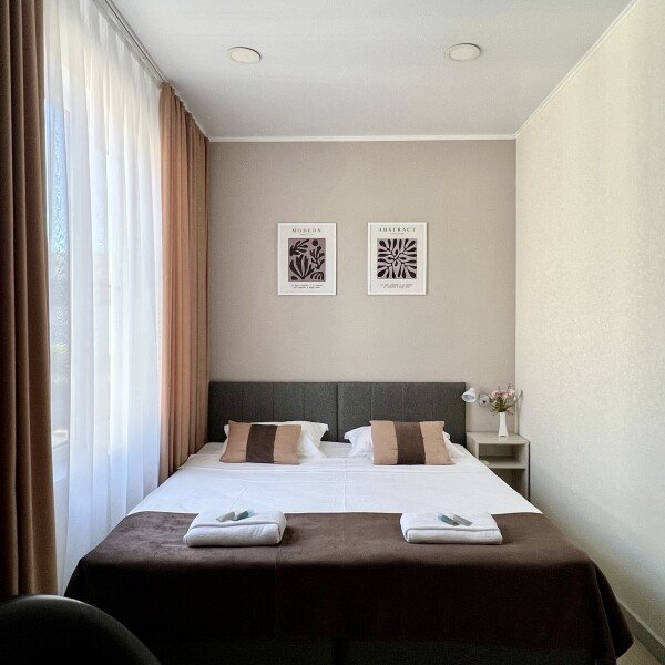 Номера с красивым дизайнерским оформлением. В каждом номере: телевизор, кондиционер, холодильник, чайник, фен, удобные кровати с ортопедическим матрасом «Аскона», шкаф, журнальный столик, кресла или диван. Все номера оборудованы санузлами и душевой. За дополнительную плату: стирка одежды.