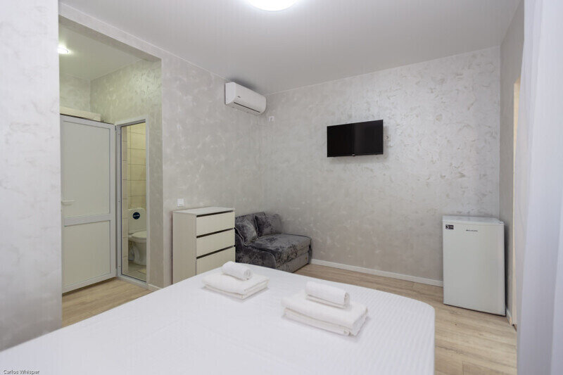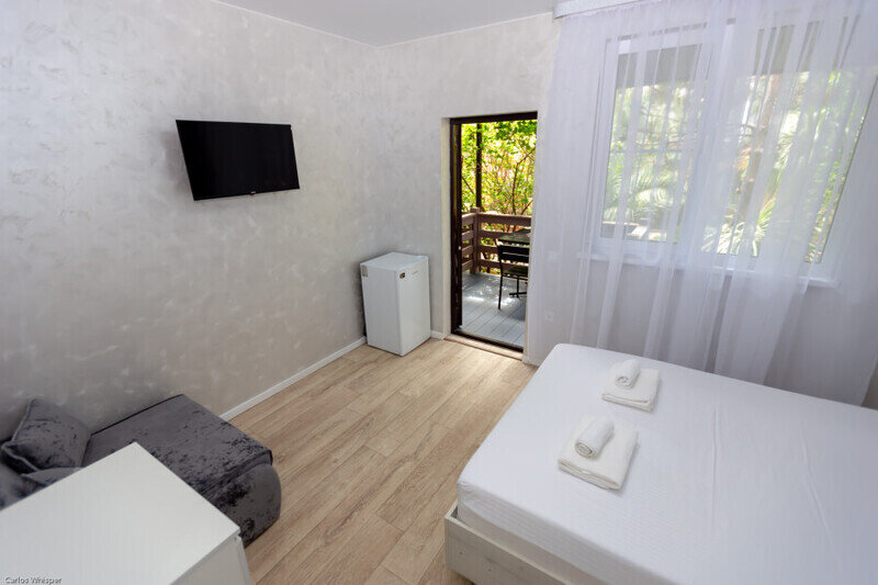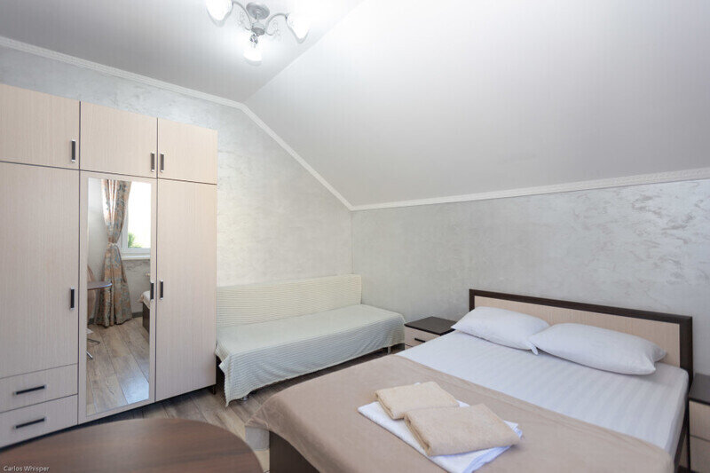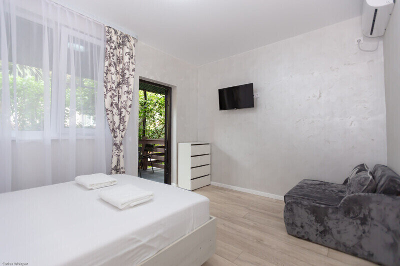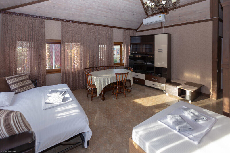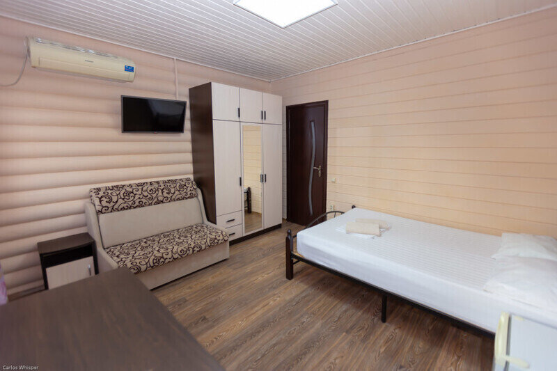 2-спальная кровать и кресло-кровать , с/у с душем на этаже общие на 2 номера , кондиционер, ТВ