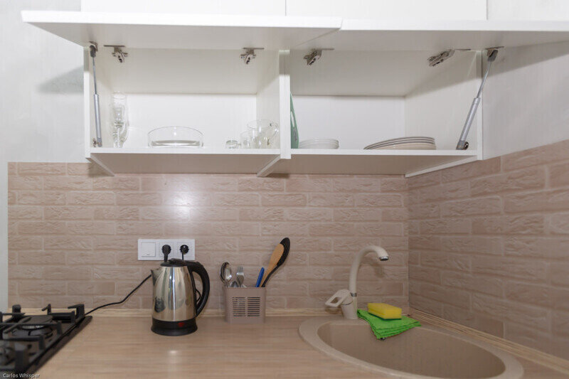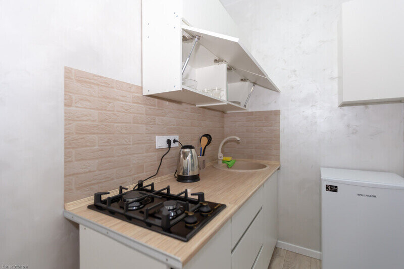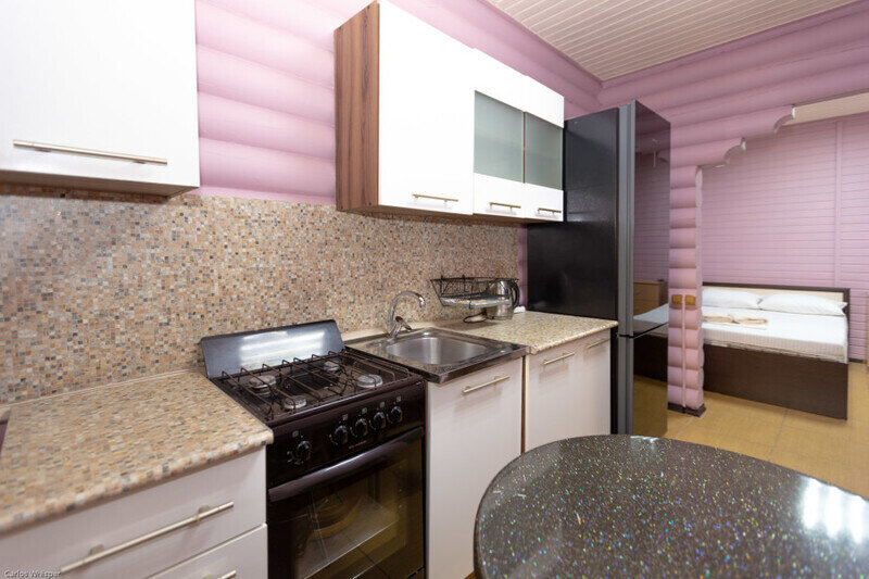 с/у с душем, кондиционер, ТВ, кухня с плитой, эл. чайником и набором посуды