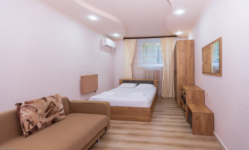 2-спальная кровать и диван кровать , с/у с душем на этаже общие на 2 номера , кондиционер, ТВ