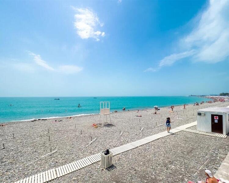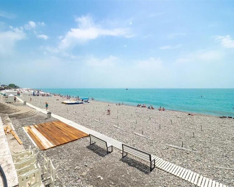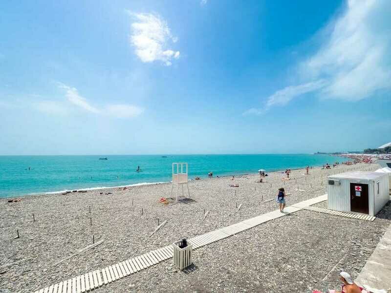 Тип пляжа: песчано-галечныйПляжная мебель / Лежаки и зонтики