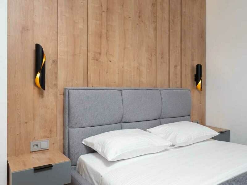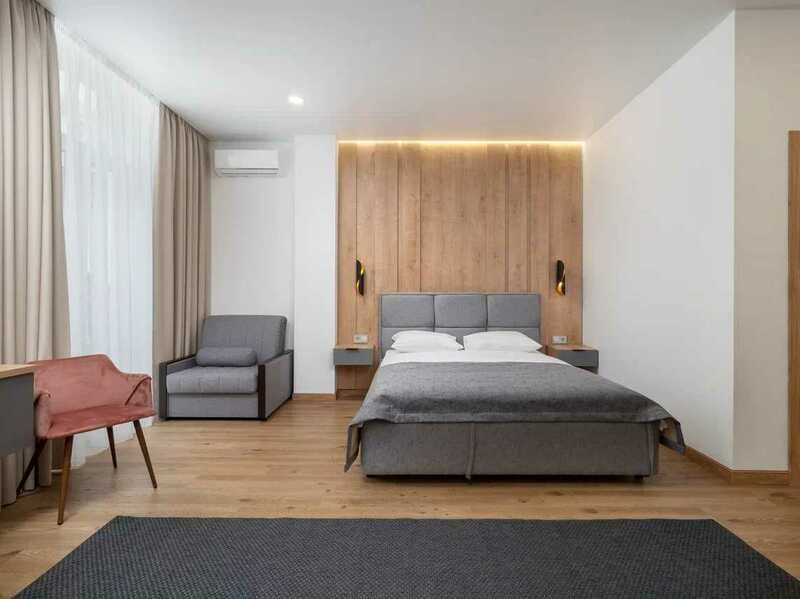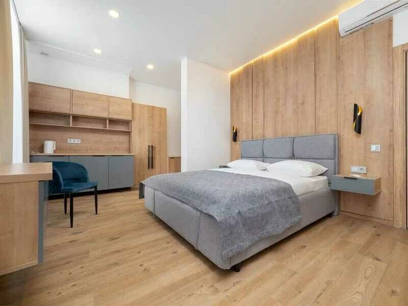 Двуспальная кровать, с/у с душем, мини-холодильник, ТВ ЖК, сейф, утюг, сплит-система, электрочайник, фен.