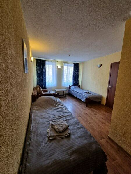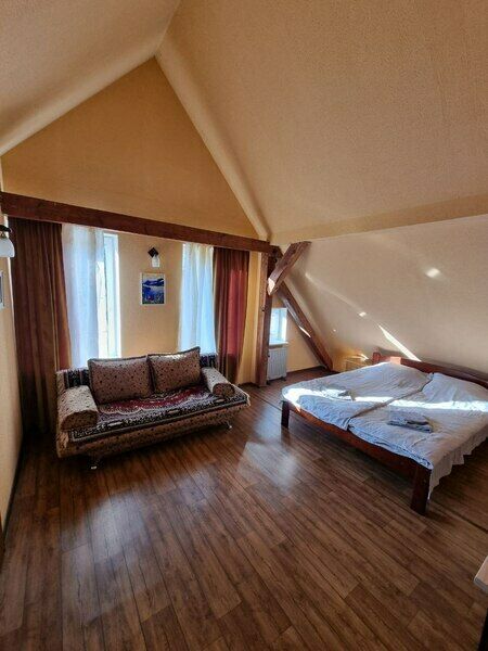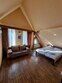 - В наличии 6 комнат, каждая их которых оборудована отдельным с/у и с комфортом вмещает от 2х до 4х гостей. Так же большой каминный зал, где можно всем вместе проводить время. Ужинать у камина, играть в настольные игры, да и просто пообщаться с друзьями.