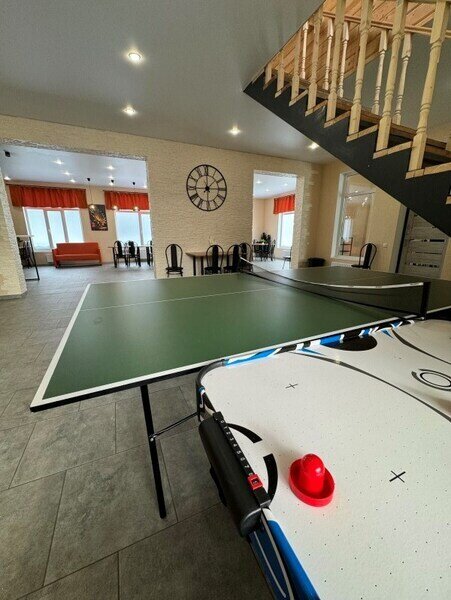 Среди развлечений на территории базы есть настольный теннис, аэрохоккей, горка, баня, банный чан и мангал для приготовления шашлыков.