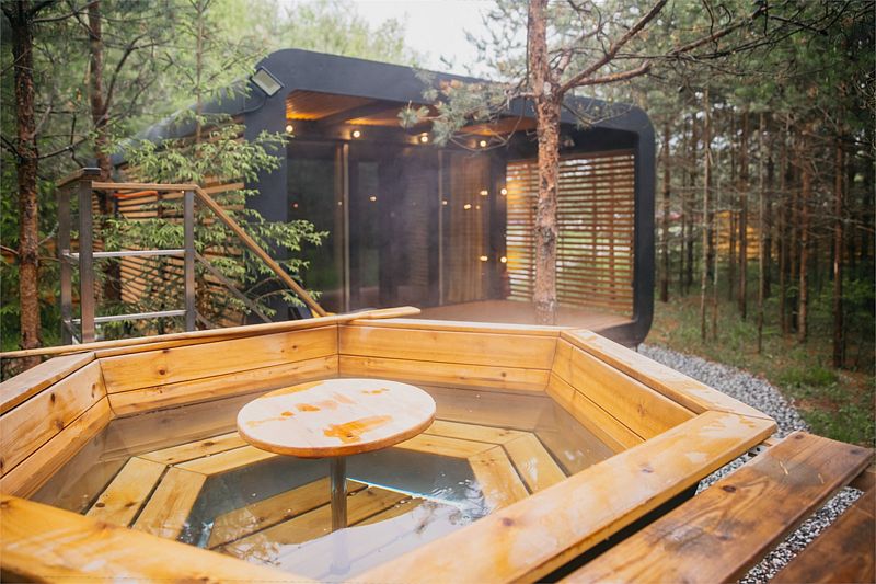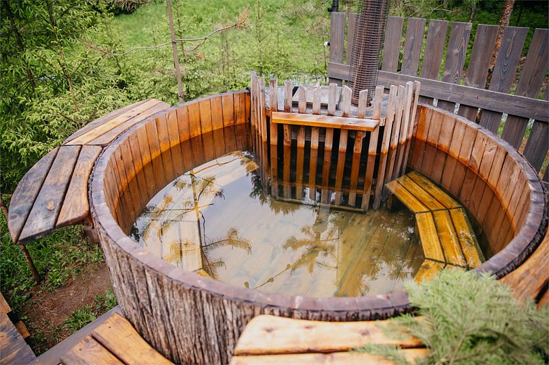 На открытой освещенной террасе домика приятно сесть с чашечкой чая и наслаждаться лесом. На территории коттеджа: мангальная зона, беседка с крышей, электрическая баня-бочка и купель, встроенная в террасу. Электрическую баню вы сможете легко включить самостоятельно в любое удобное время и пользоваться ей до 4 часов. При аренде купели сотрудник подготовит услугу к выбранному вами времени. Самое раннее время готовности купели 17:00-18:00, самое позднее 21:00-22:00. Комфортная температура воды будет сохраняться около 2 часов.