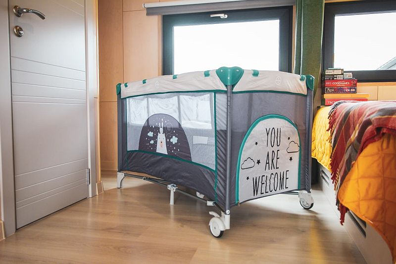 Если вы запланировали семейный отдых — ЁLKI помогут вам. В домиках есть кровать-манеж для маленьких детей. Отличный вариант для сна и игр. Удобная кроватка, которая легко трансформируется в зону для игр. Комфортно и безопасно.