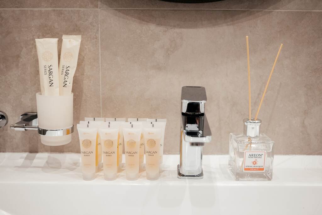 Все номера оборудованы для комфортного проживания гостей: кухней с микроволновой печью, чайником и холодильником, телевизором с цифровым телевидением и SMART TV, а также ванной комнатой, оборудованной душевой кабиной, раковиной для умывания, туалетом, феном, набором полотенец, косметическими принадлежностями: зубным набором, гелем, шампунем, кондиционером.