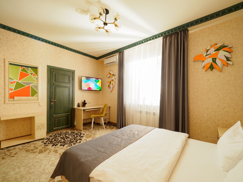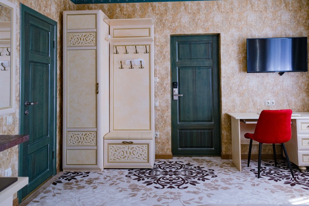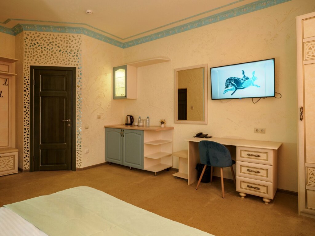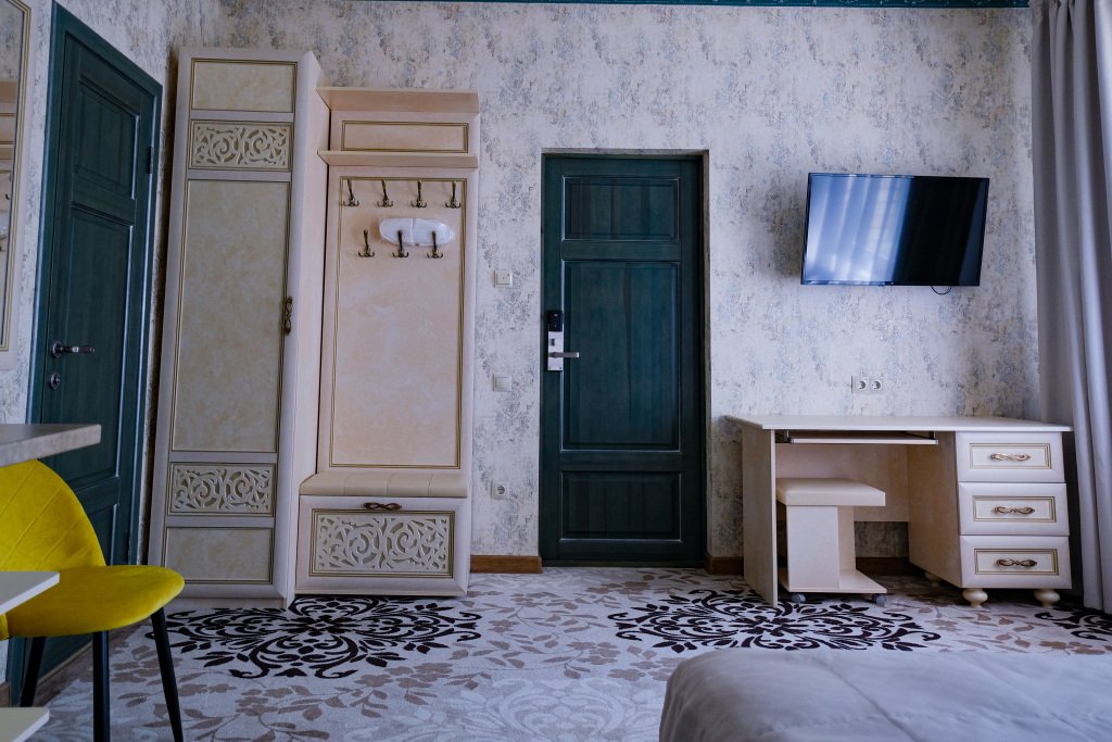 Номер уютно обставлен и оснащён необходимым, чтобы отдохнуть после долгого и насыщенного дня. Имеются телевизор, мини-бар и халат. Оснащение зависит от выбранной категории номера.