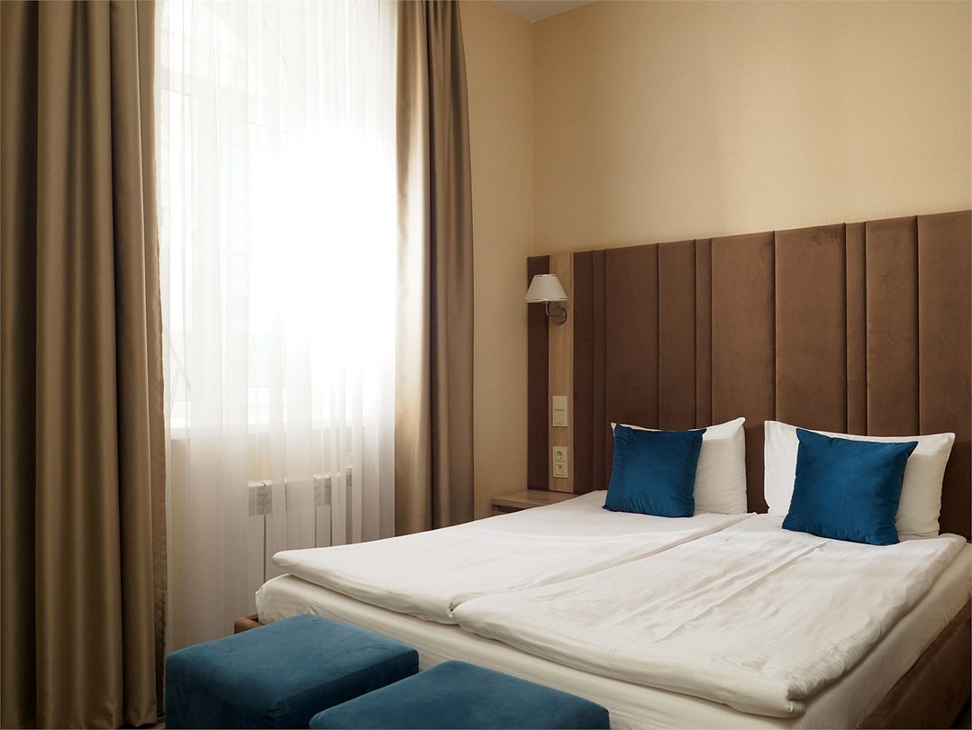 Отель отличает удобное расположение – дорога от железнодорожного или автовокзала займёт не более 5 минут на такси, а пешая прогулка – 10 минут. К вашим услугам четыре варианта современных номеров, оснащенных всем необходимым для путешественников.