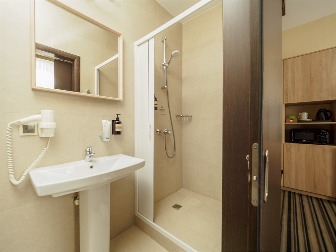Стандартный двухместный номер. Большая двуспальная кровать. Собственная ванная комната с душевой кабиной. Максимальная вместимость - 2 взрослых+ 1 ребёнок на детской кроватке (до 4х лет). Возможно проживание с домашними животными за дополнительную плату.Услуги и удобства